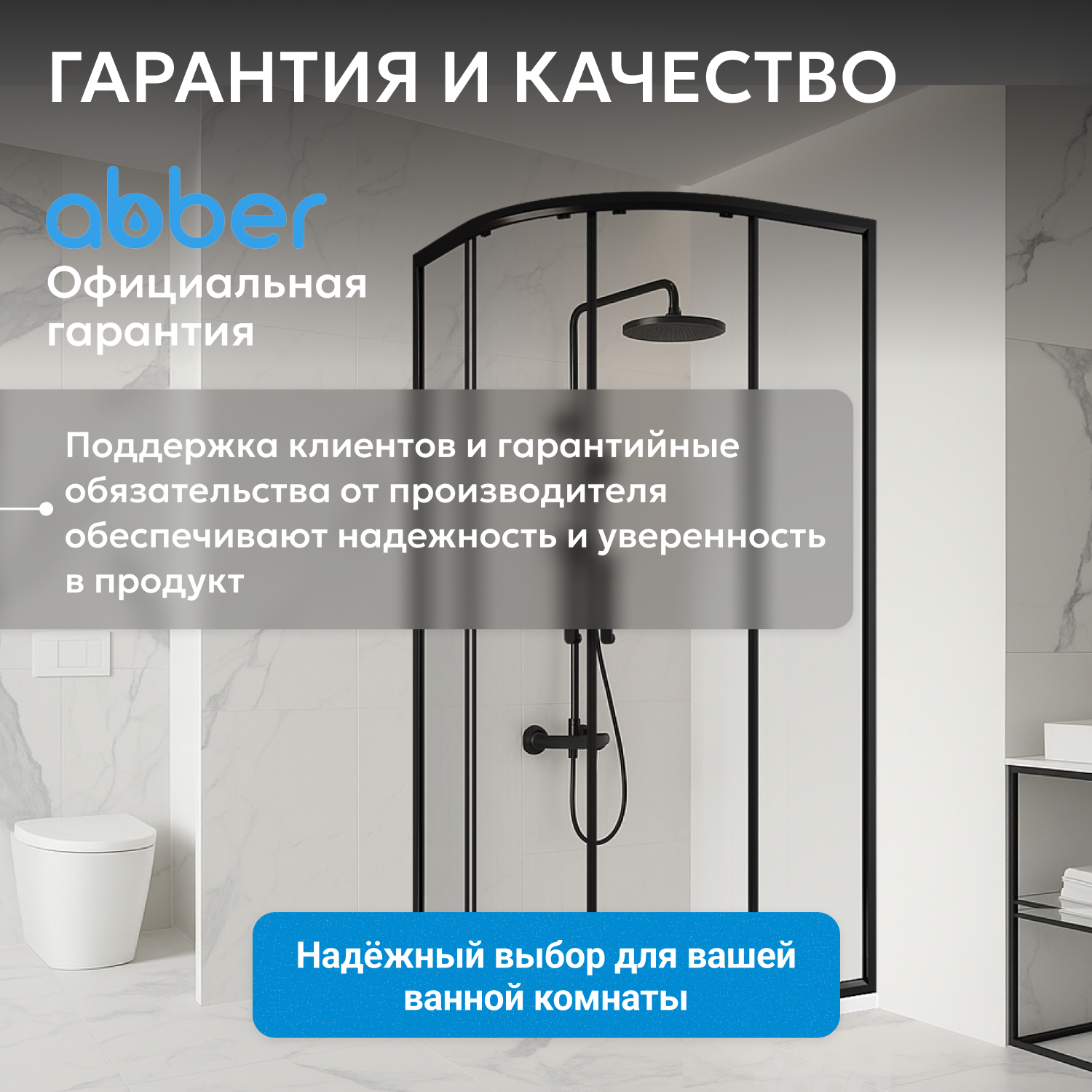 Продукция ABBER сочетает немецкое качество и лаконичный дизайн. Универсальная модификация подходит для различных ванных комнат. Вес конструкции — 51 кг, что подчеркивает её прочность. Гарантия — три года.