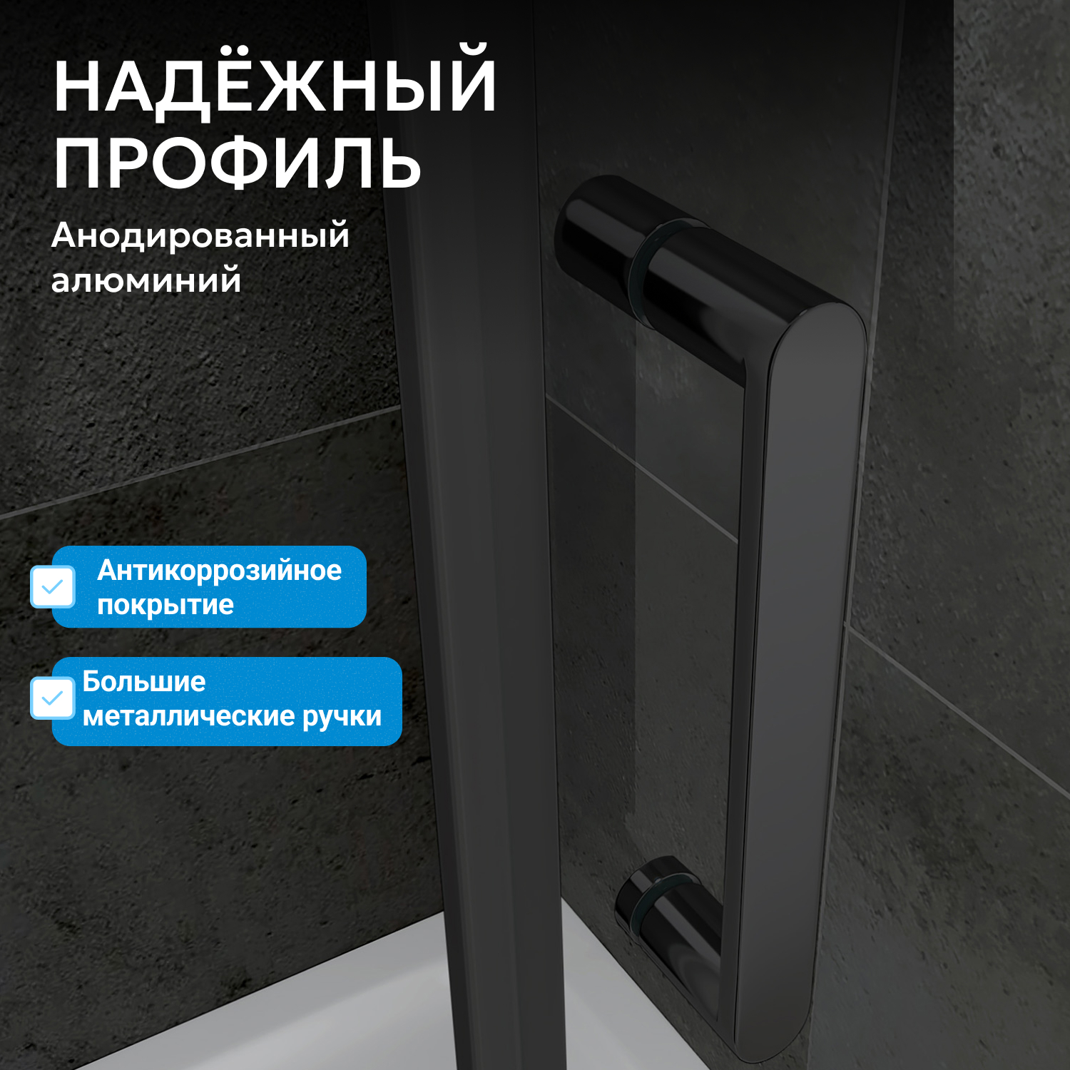 ABBER Schwarzer Diamant AG01080B — выбор для тех, кто ценит надежность, функциональность и современный внешний вид. Четкие формы, черный профиль и прозрачное стекло делают модель практичным решением для оснащения ванной комнаты.