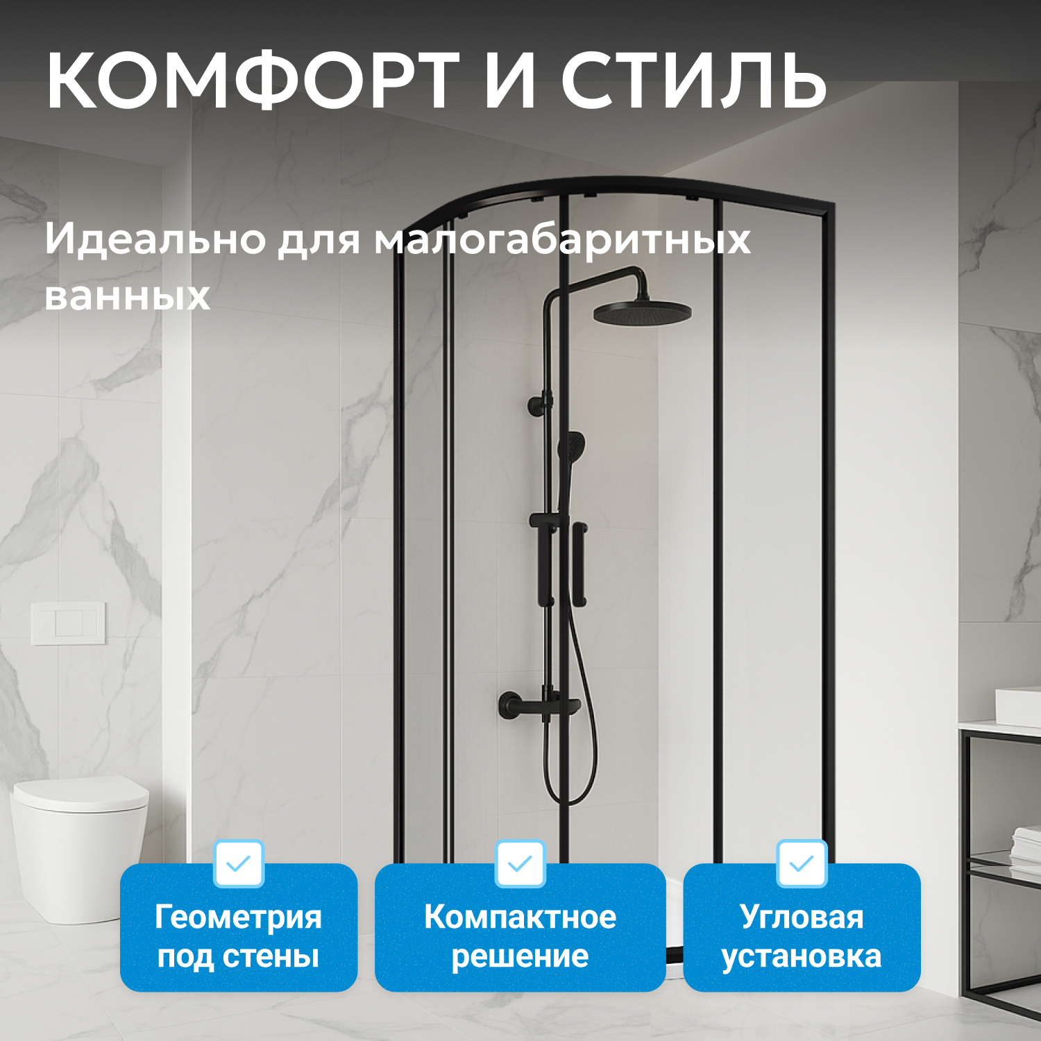 Душевой уголок ABBER Schwarzer Diamant AG01090B устанавливается в угол и оптимально использует пространство. Прозрачные стеклянные полотна толщиной 6 мм сочетаются с черным металлическим профилем, гармонируя с современным интерьером и подчеркивая баланс дизайна и практичности.
