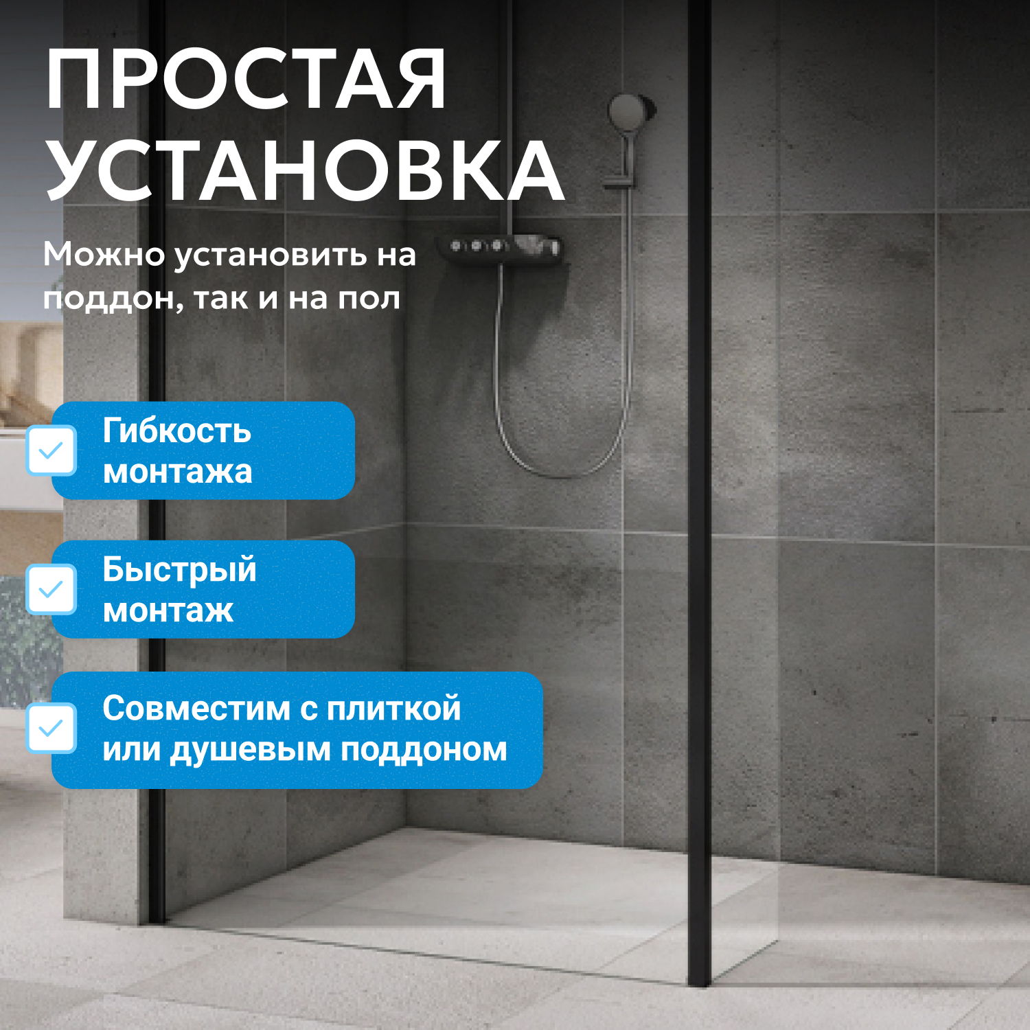 - возможна установка на пол и на поддон, поддон приобретается отдельно
