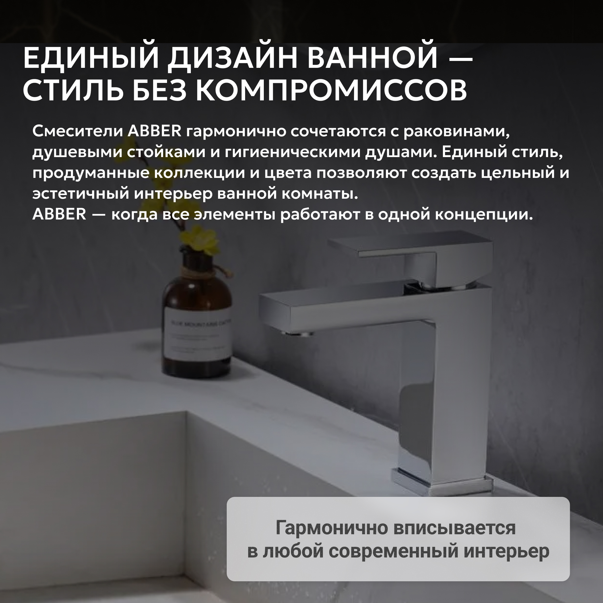 Корпус всех смесителей ABBER изготавливается из латуни техникой цельной отливки при атмосферном давлении, что обеспечивает высокую прочность изделия и устойчивость к перепадам давления.