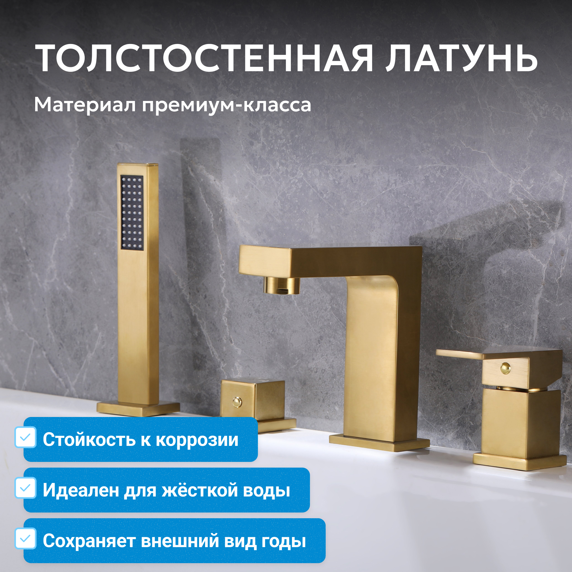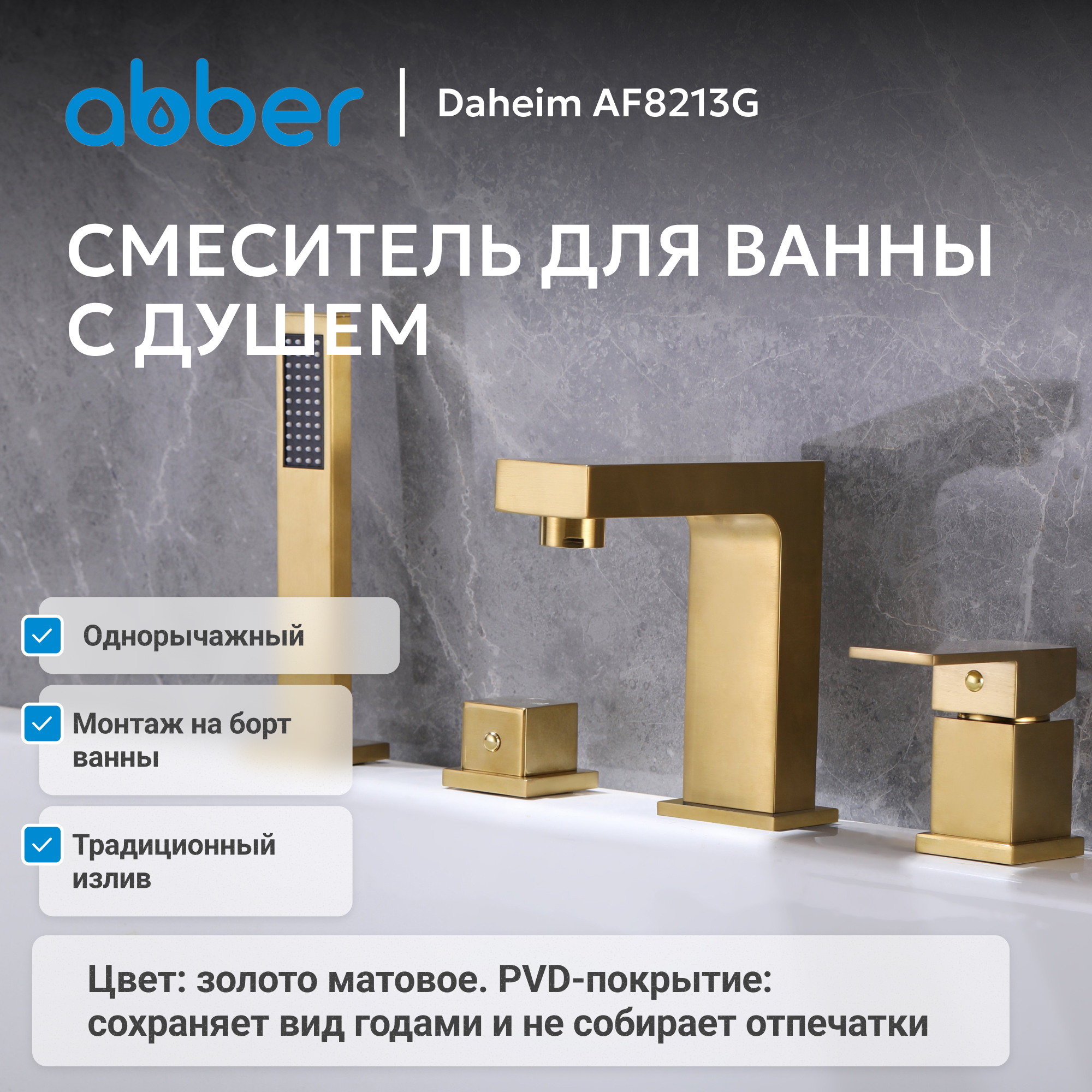 Смеситель ABBER Daheim AF8213G на борт ванны, золото матовое