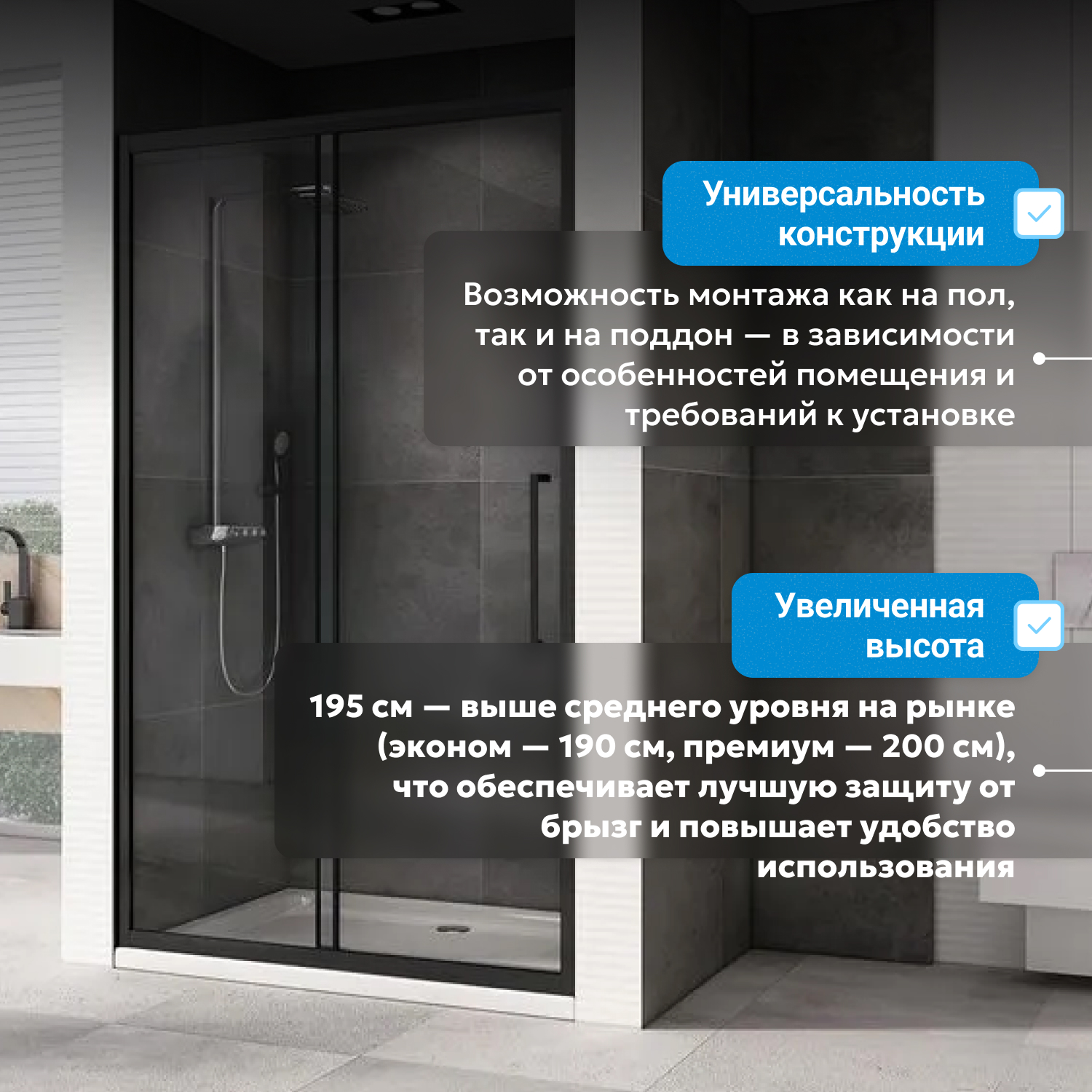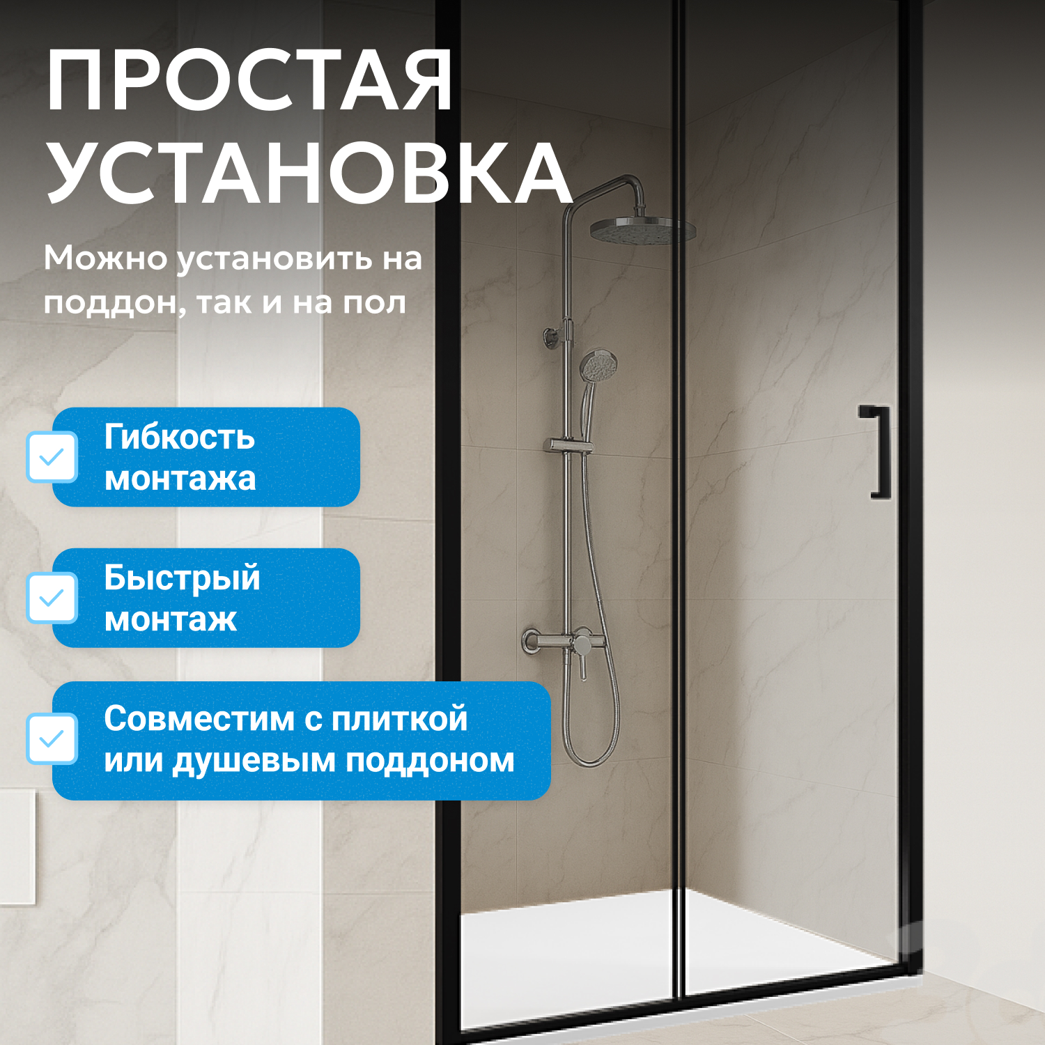 - возможна установка на пол и на поддон, поддон приобретается отдельно