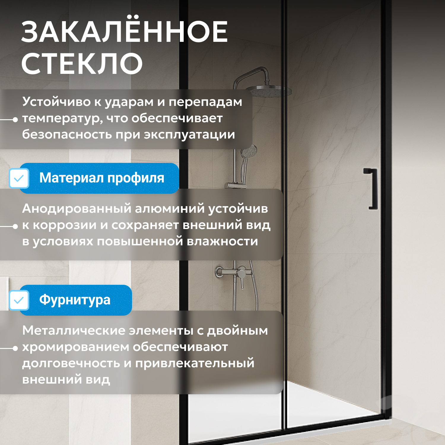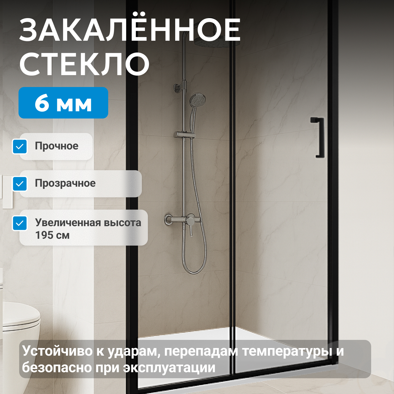 - закаленное, прозрачное стекло 6 мм