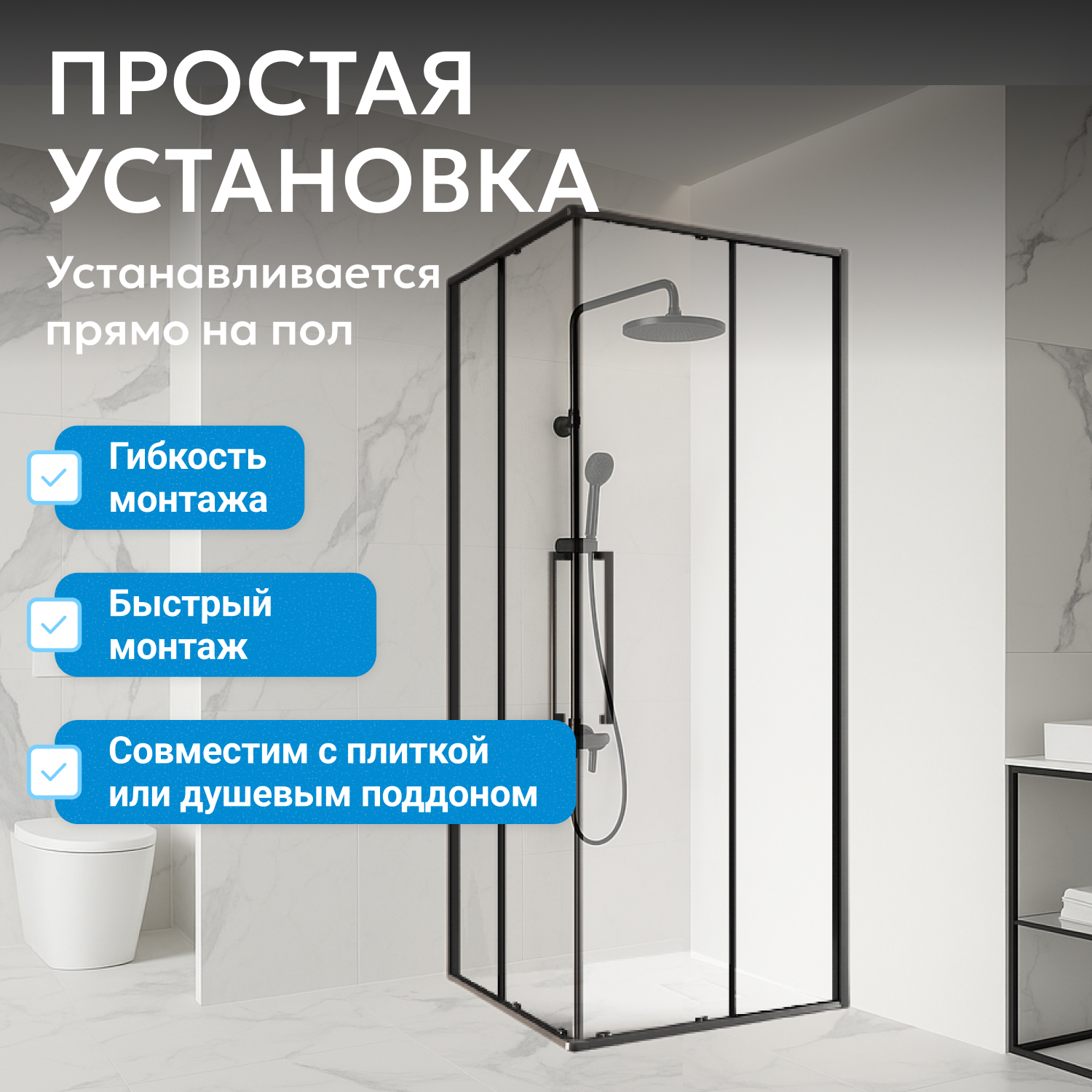 - возможна установка на пол и на поддон, поддон приобретается отдельно