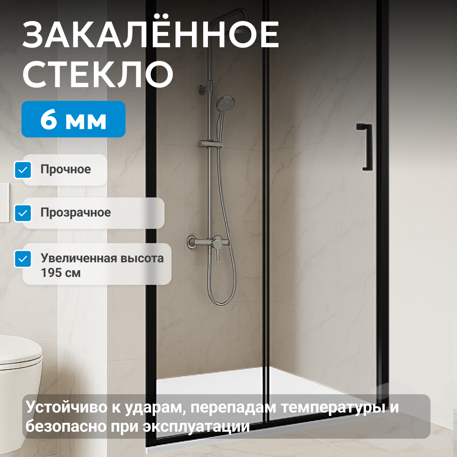 - закаленное, прозрачное стекло 6 мм