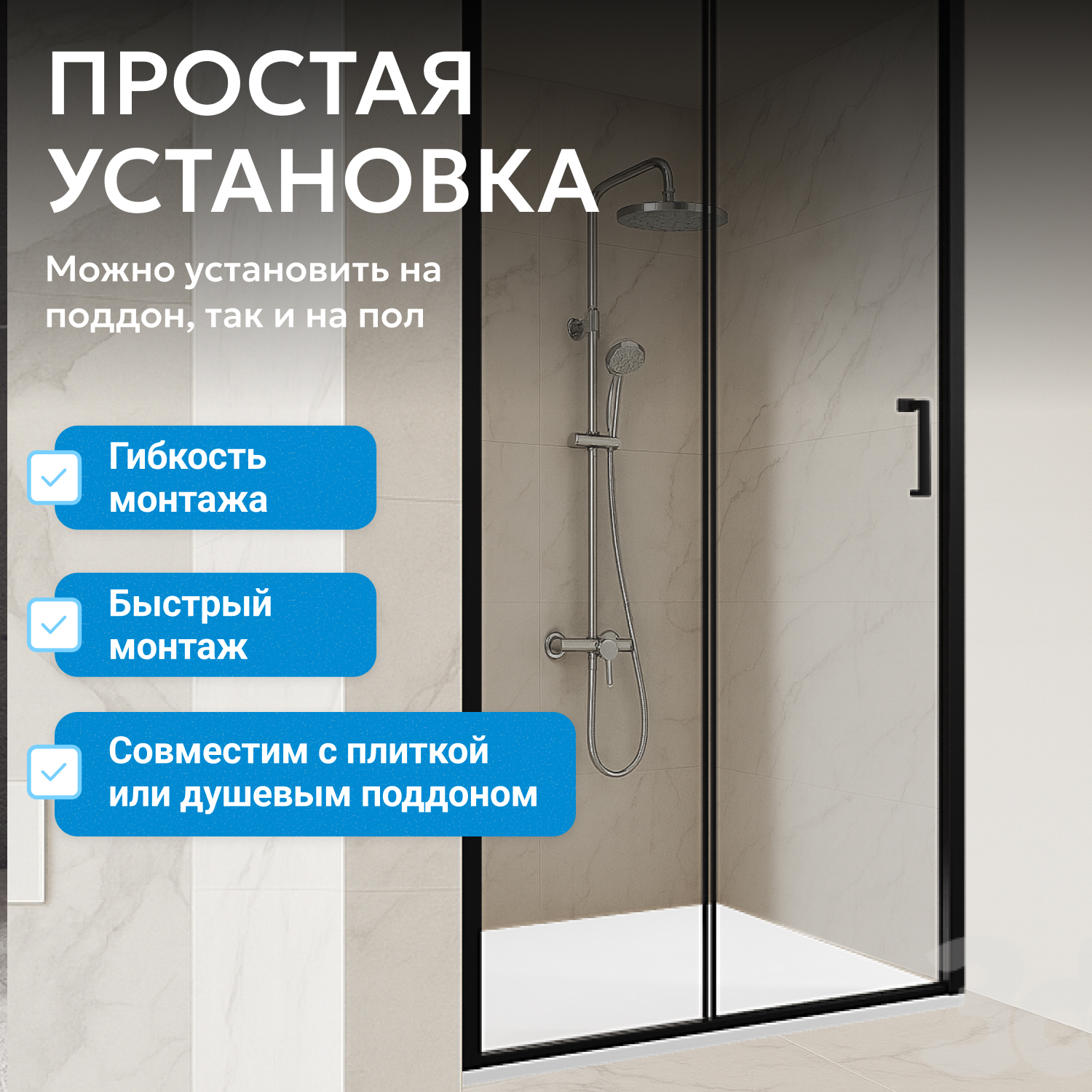 - возможна установка на пол и на поддон, поддон приобретается отдельно