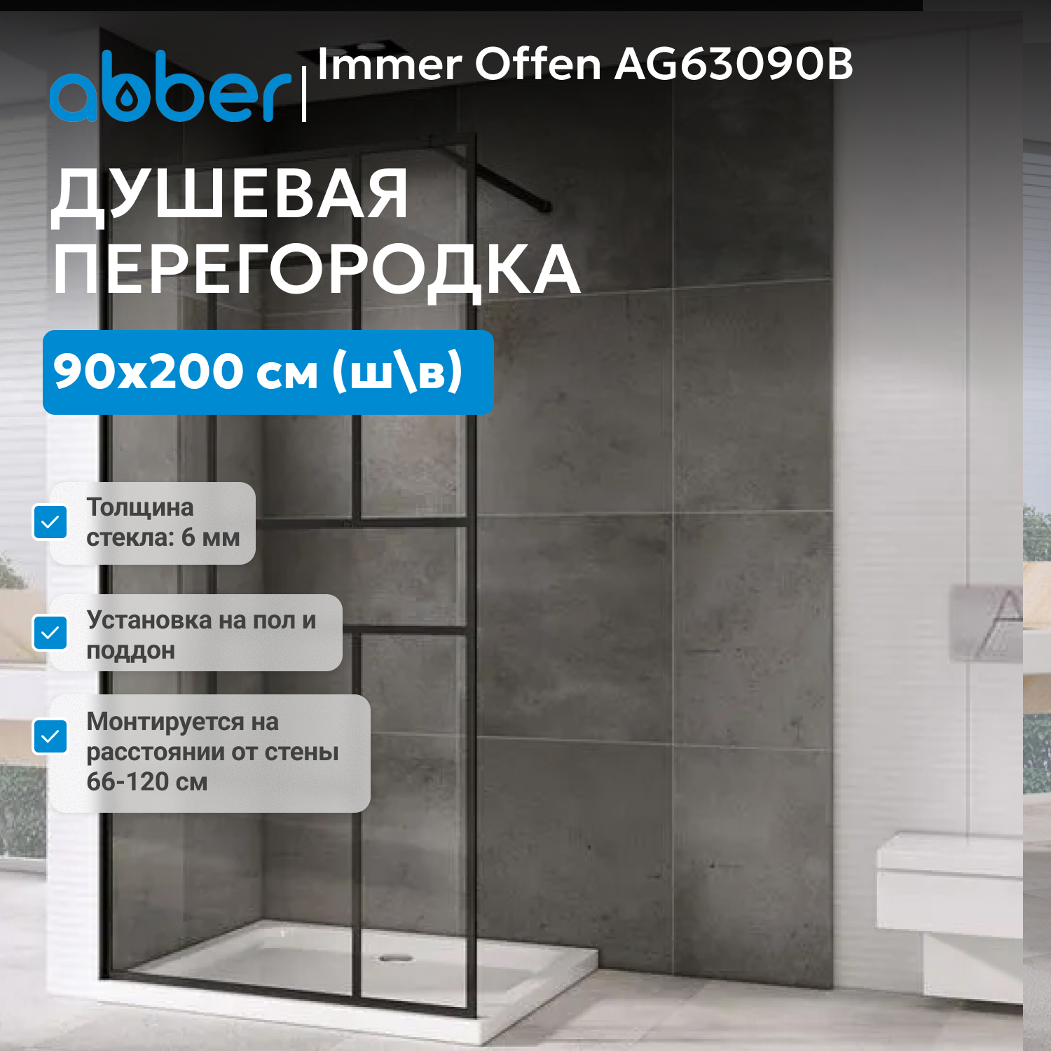 Душевая перегородка ABBER Immer Offen AG63090B