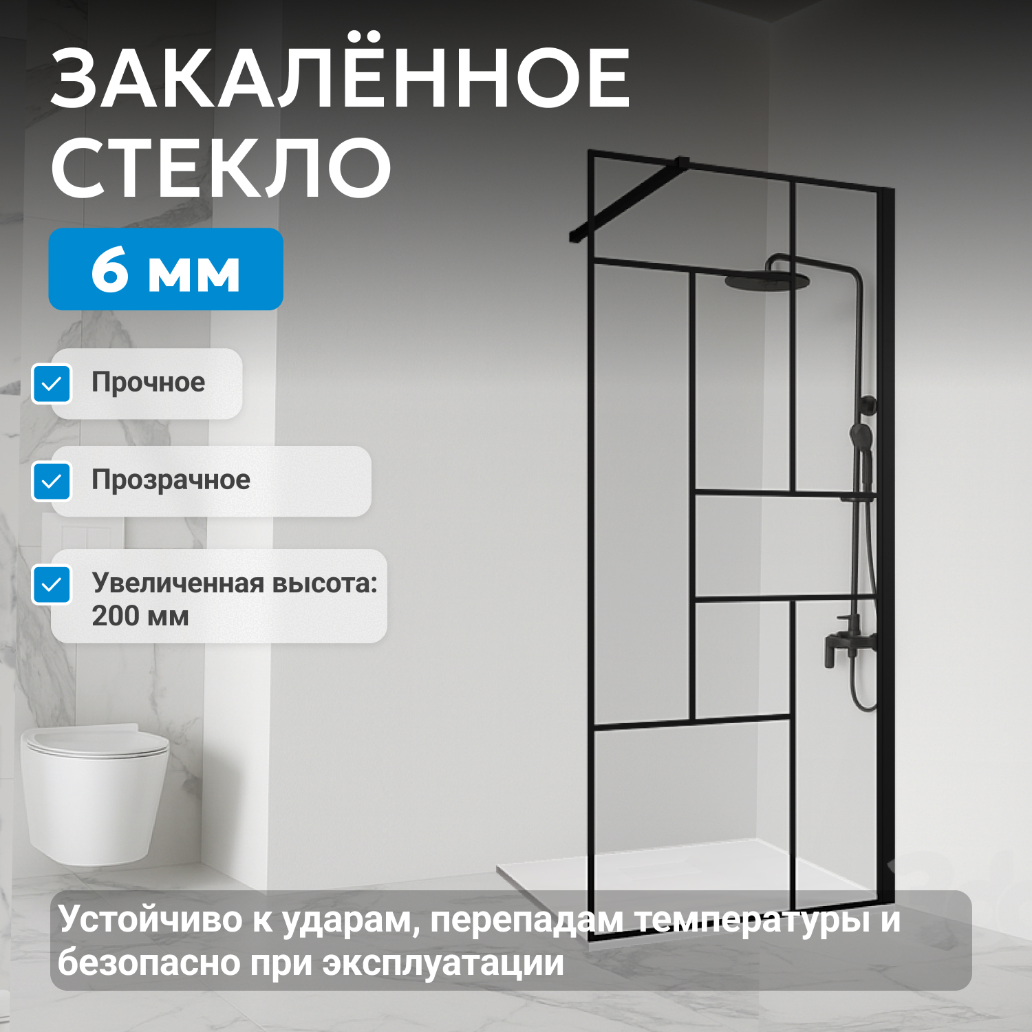 - закаленное, прозрачное стекло 6 мм