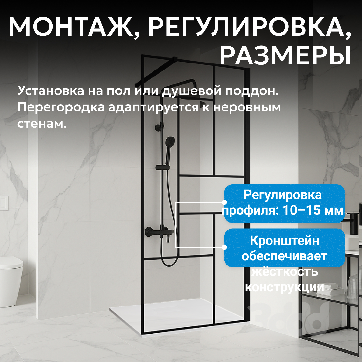 - возможна установка на пол и на поддон, поддон приобретается отдельно