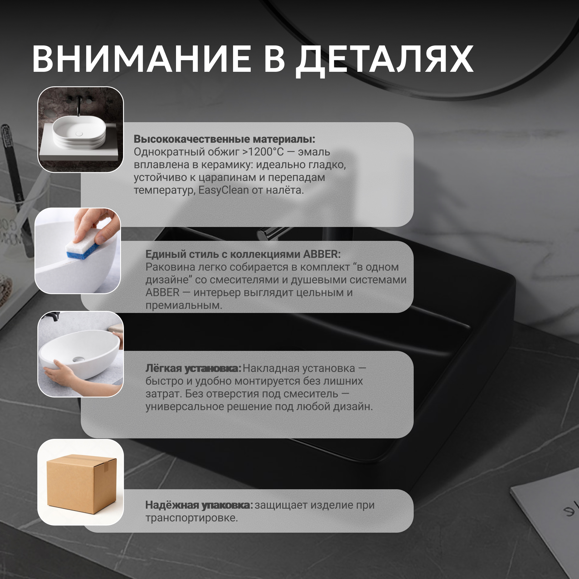 Раковина накладная ABBER Rechteck AC2203MB черная матовая