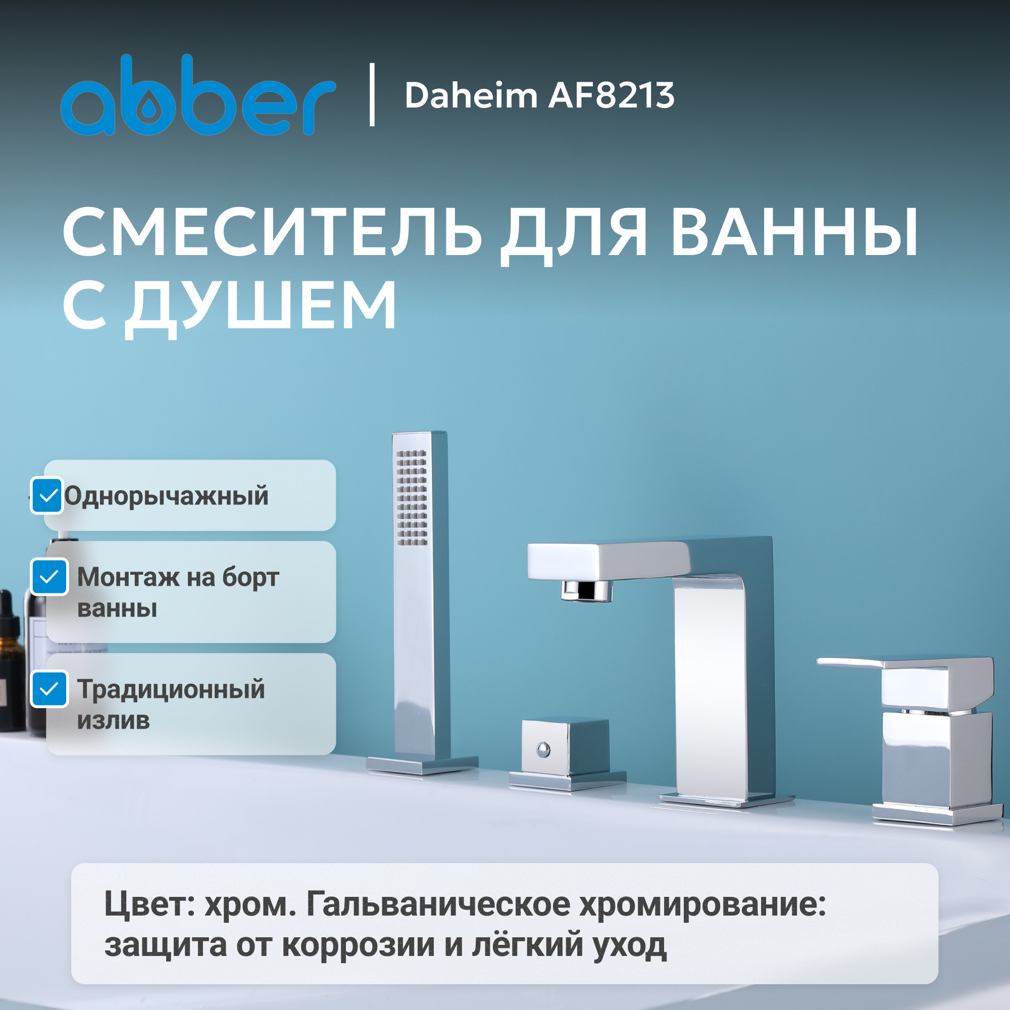 Смеситель ABBER Daheim AF8213 на борт ванны, хром