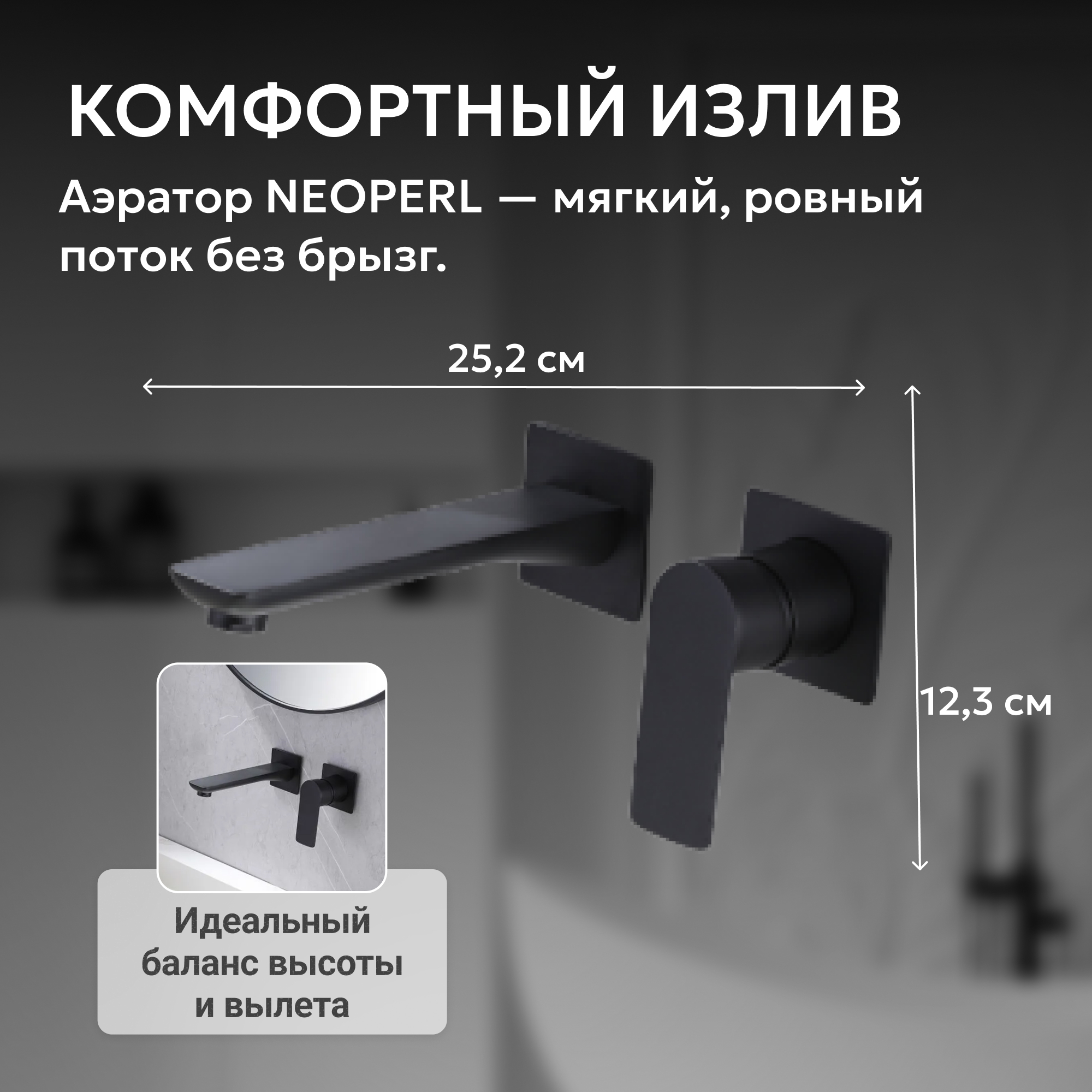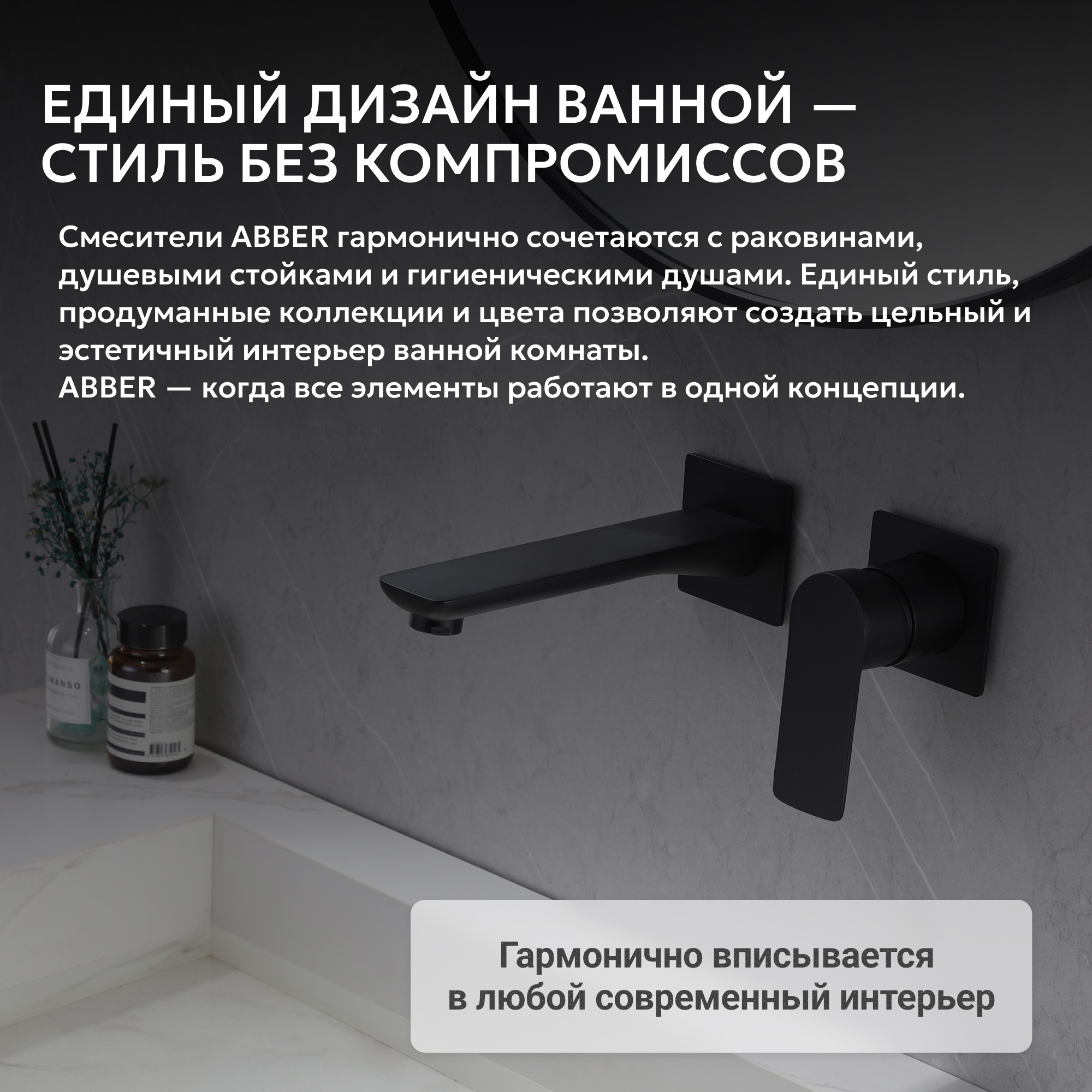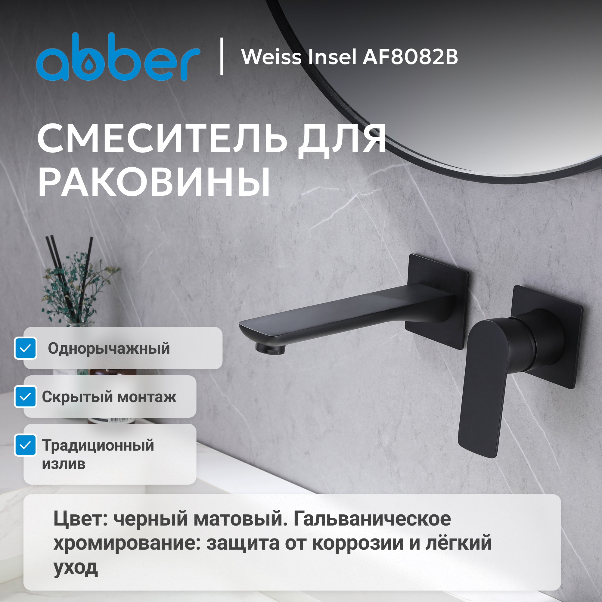 Смеситель ABBER Weiss Insel AF8082B для раковины скрытого монтажа, черный матовый