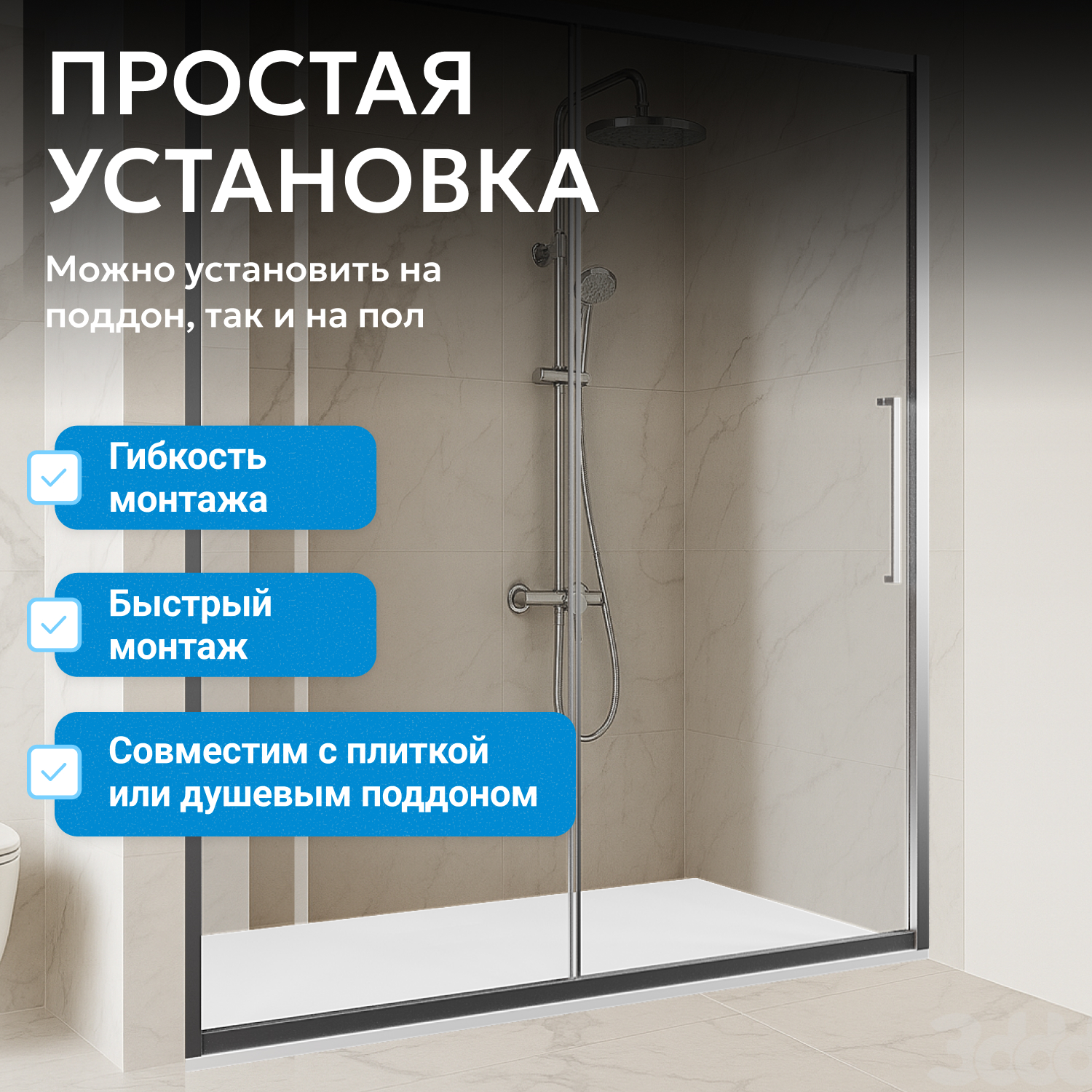 - возможна установка на пол и на поддон, поддон приобретается отдельно