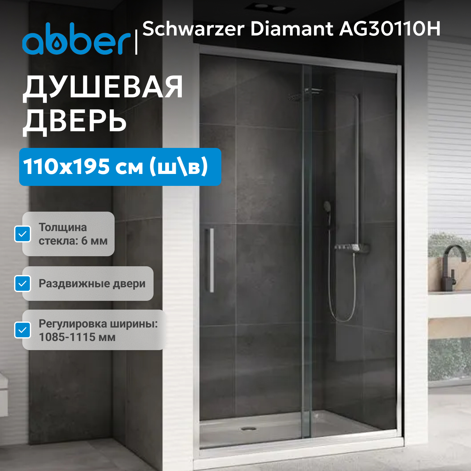 Душевая дверь ABBER Schwarzer Diamant AG30110H