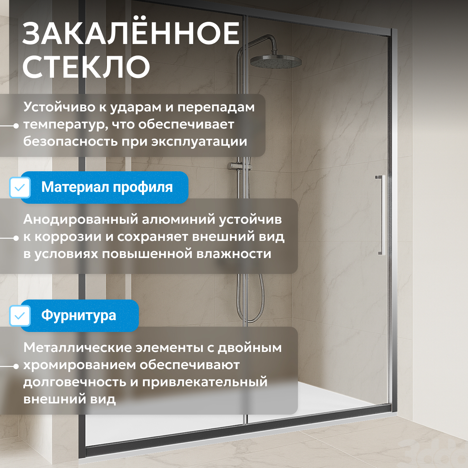 - закаленное, прозрачное стекло 6 мм