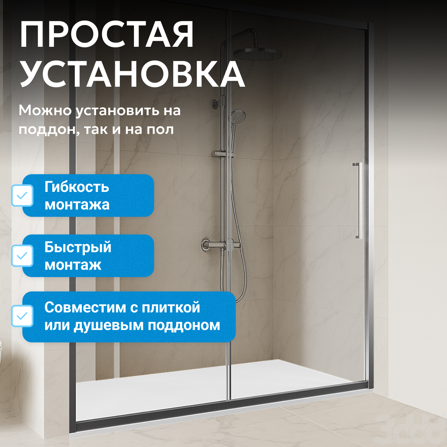 - возможна установка на пол и на поддон, поддон приобретается отдельно