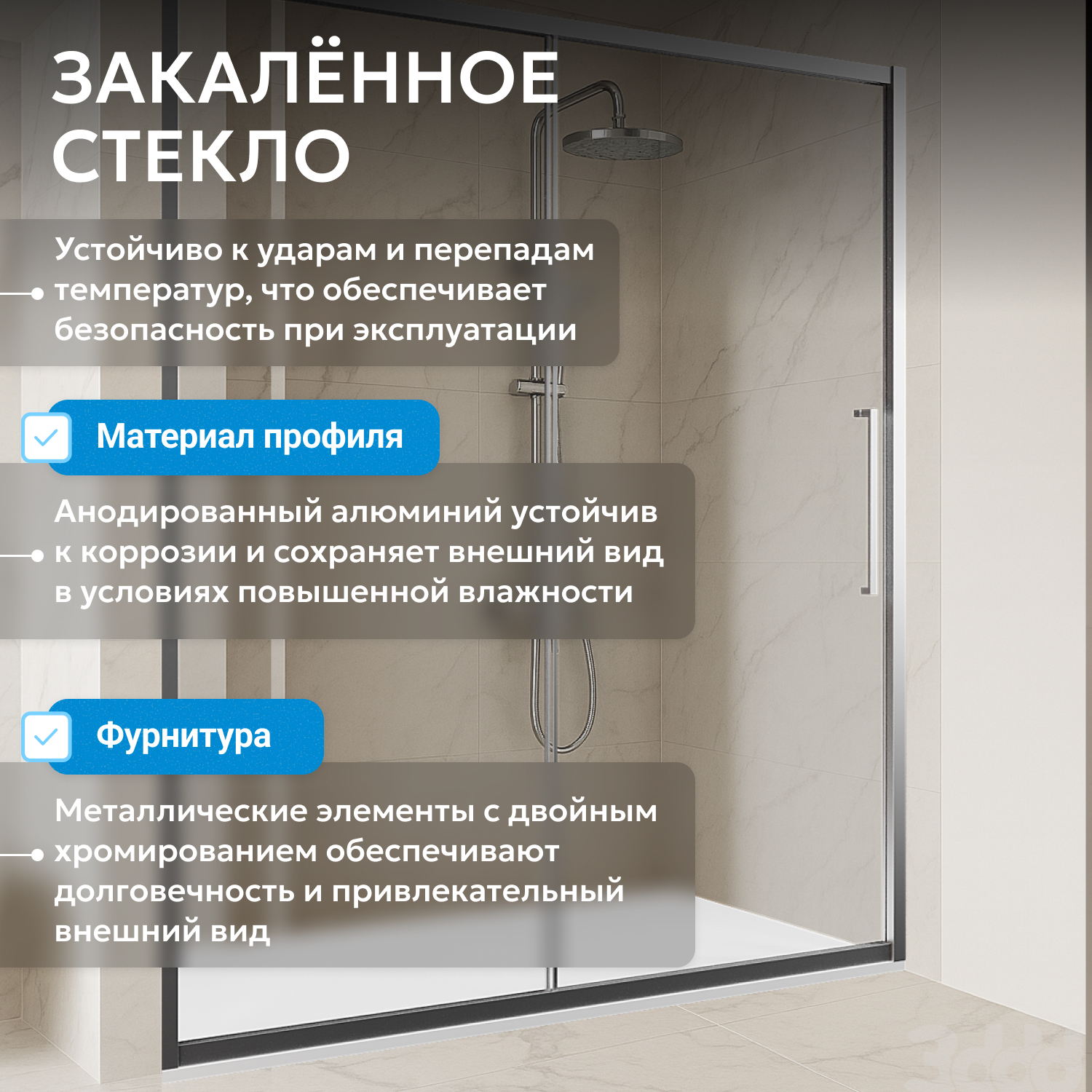 - закаленное, прозрачное стекло 6 мм