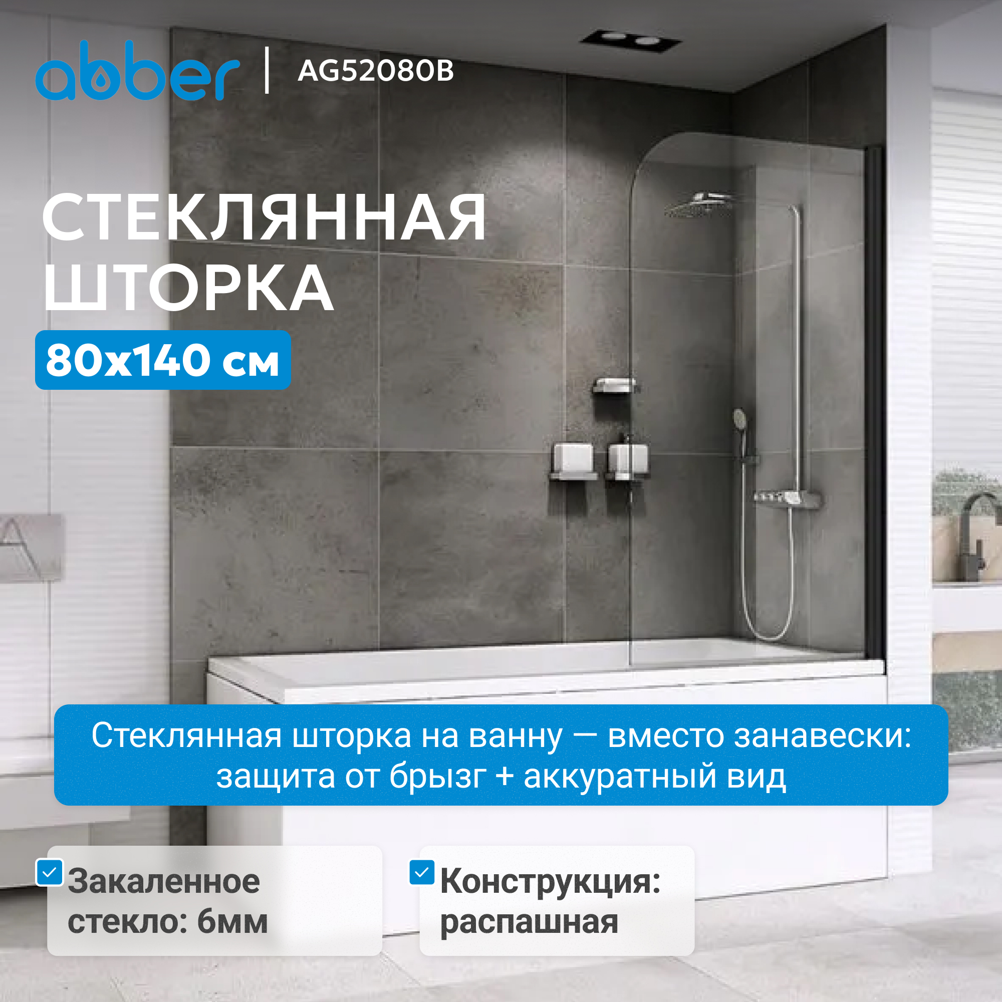 Шторка на ванну ABBER Ewiges Wasser AG52080B