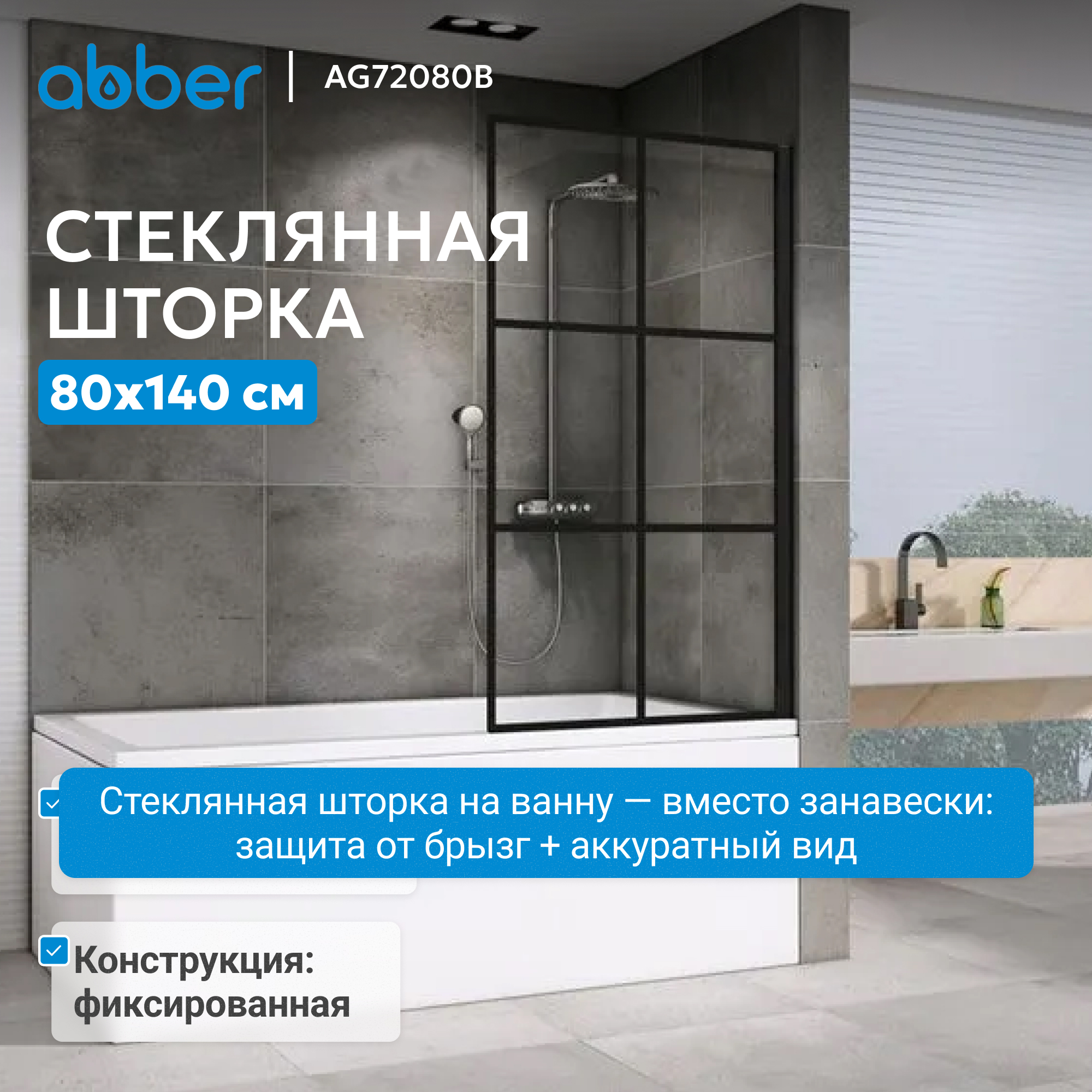 Шторка на ванну ABBER Immer Offen AG72080B