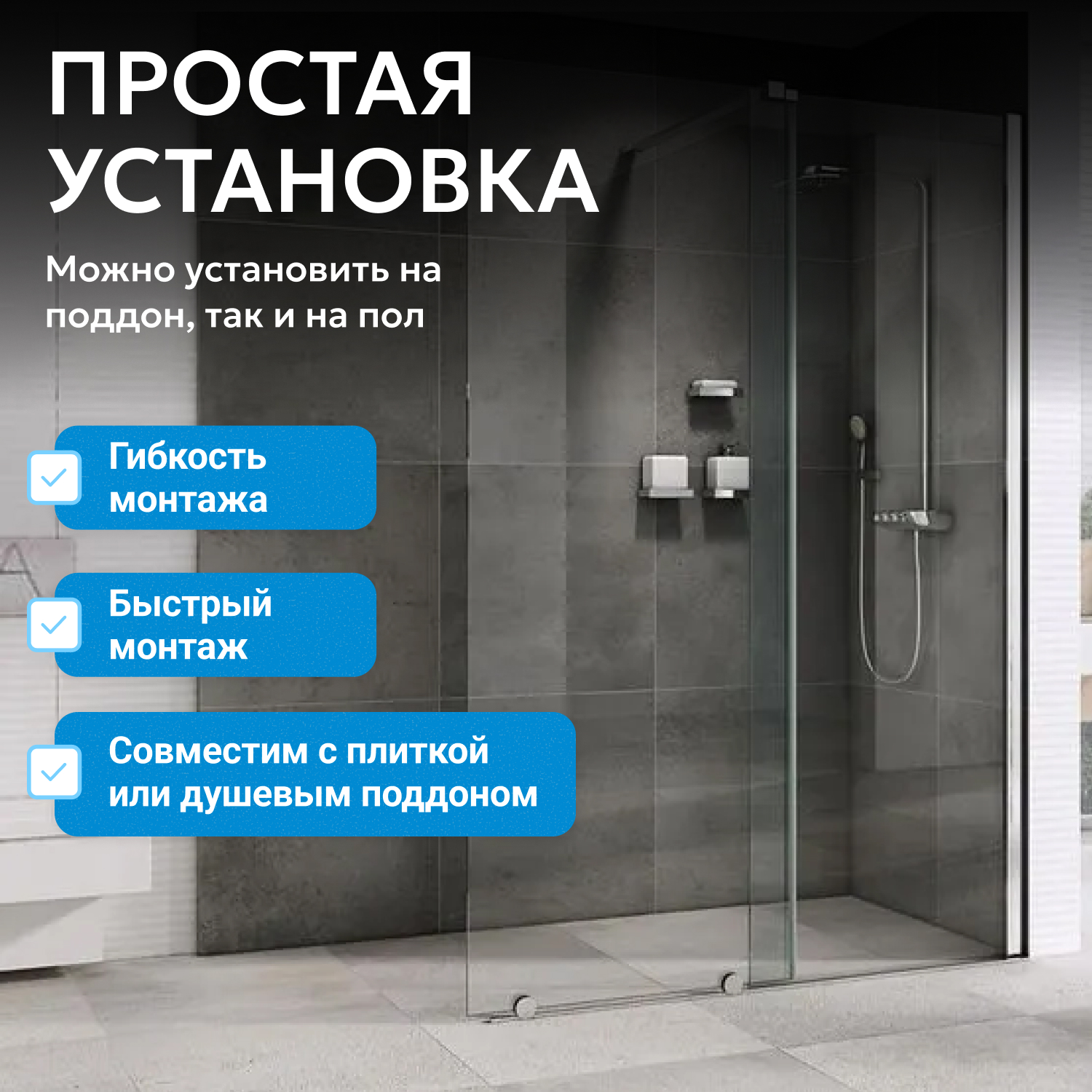 - возможна установка на пол и на поддон, поддон приобретается отдельно