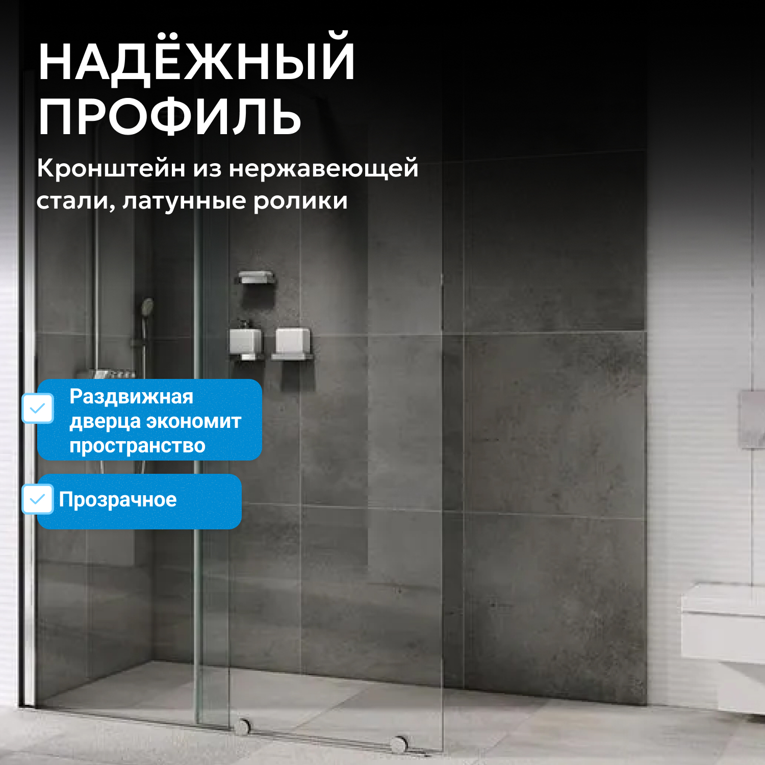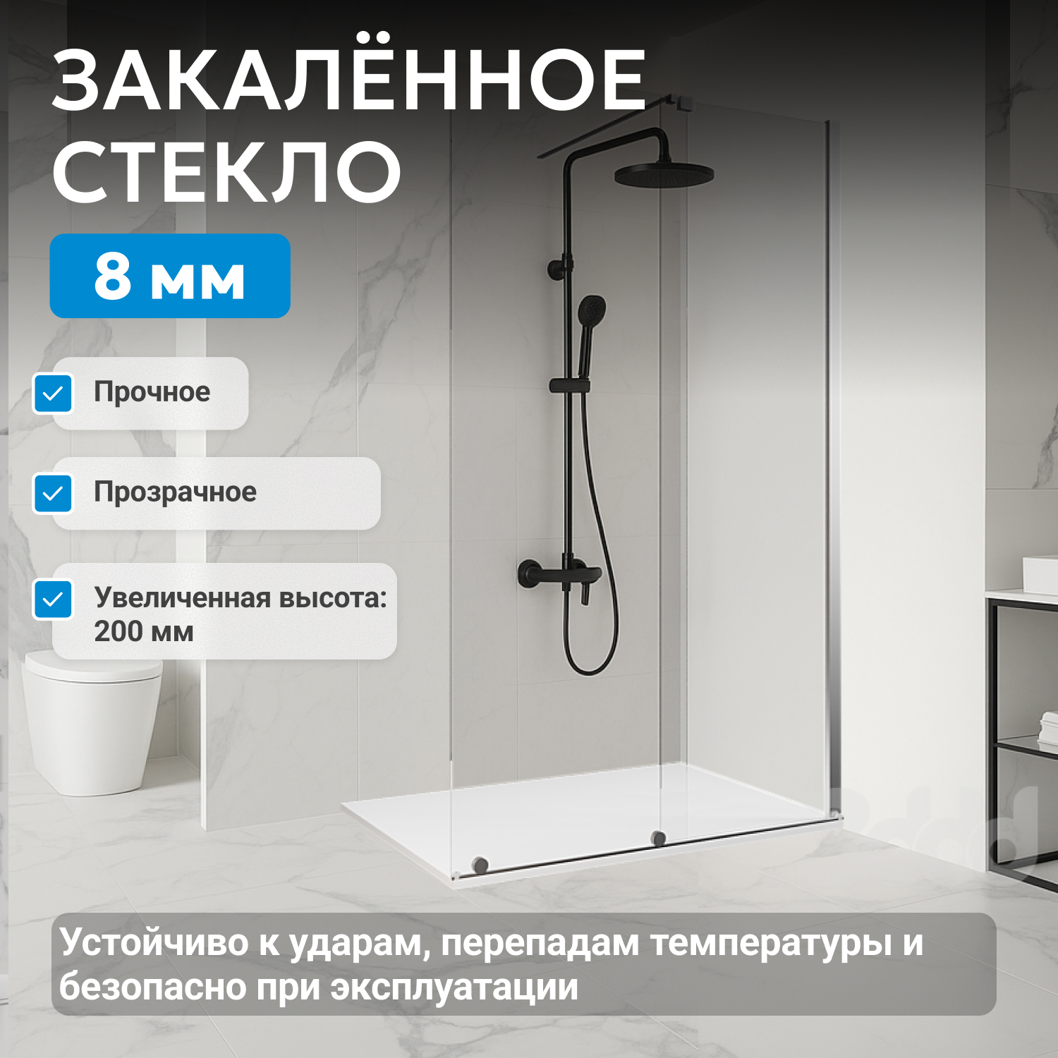 - закаленное, прозрачное стекло 8 мм