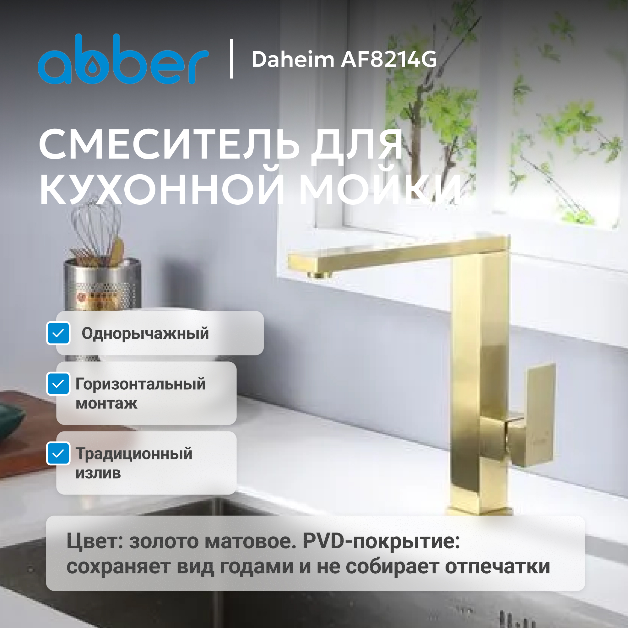 Смеситель ABBER Daheim AF8214G для кухни, золото матовое