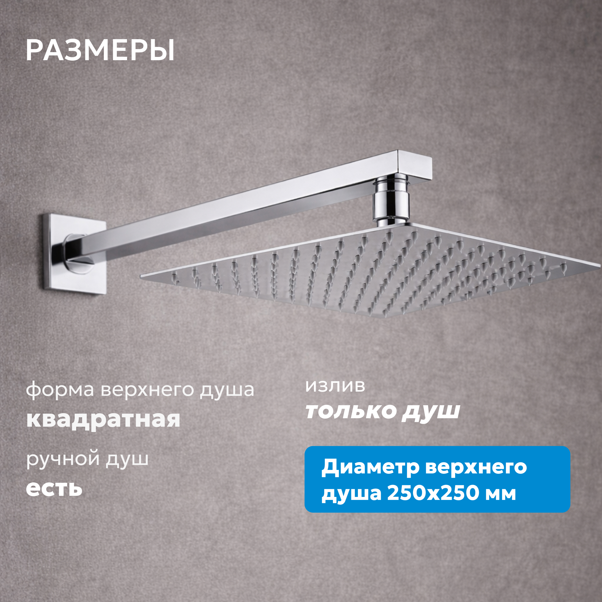 Размер верхнего душа, мм
