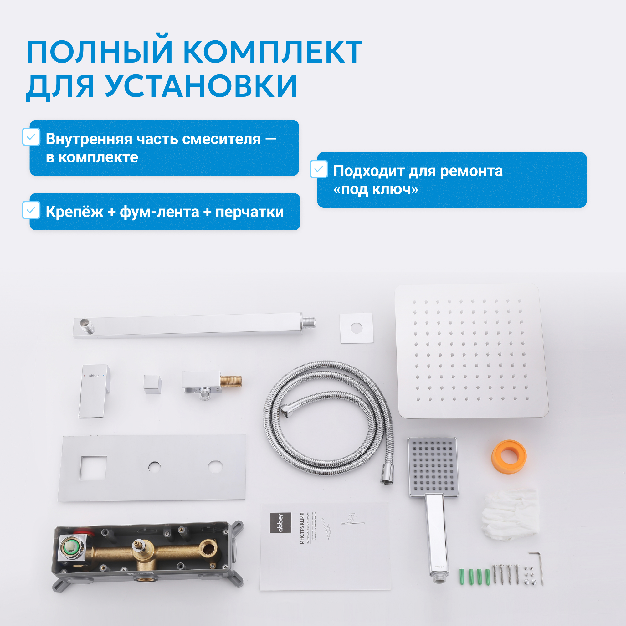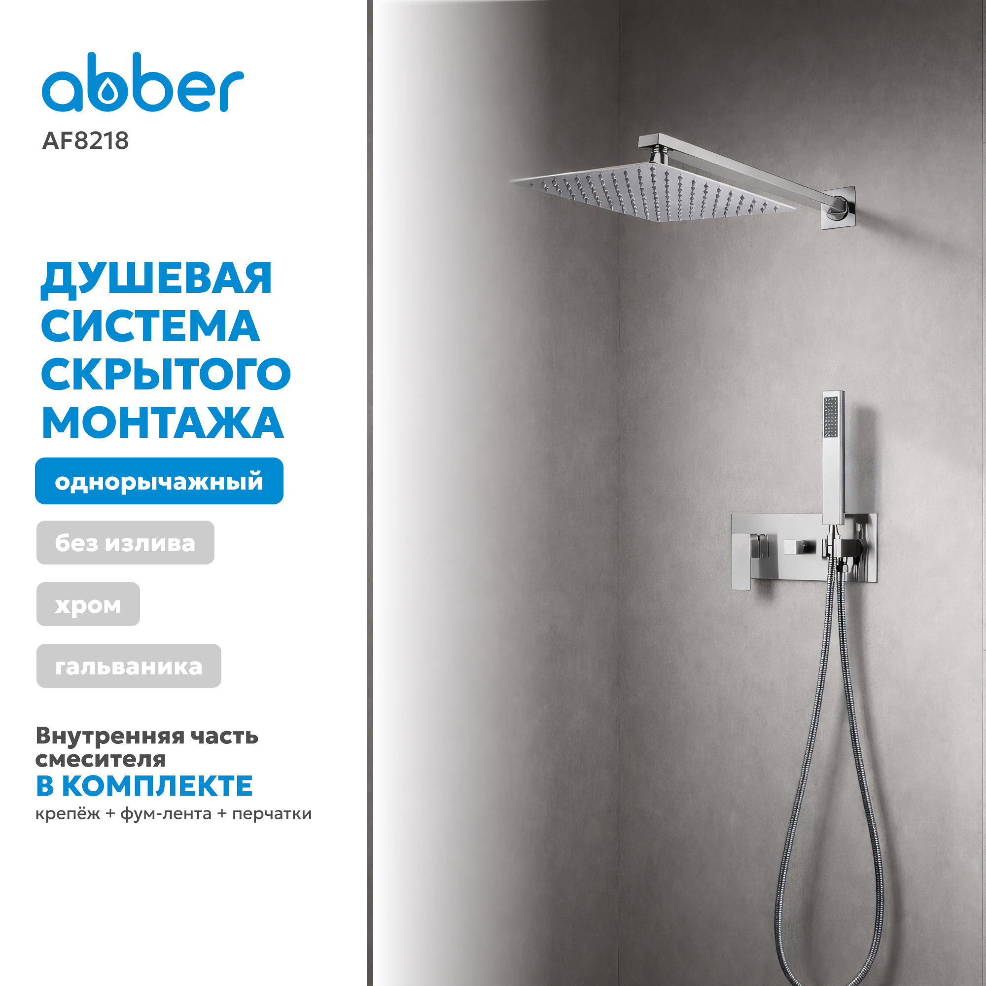 Душевая система ABBER Daheim AF8218 скрытого монтажа без излива, хром