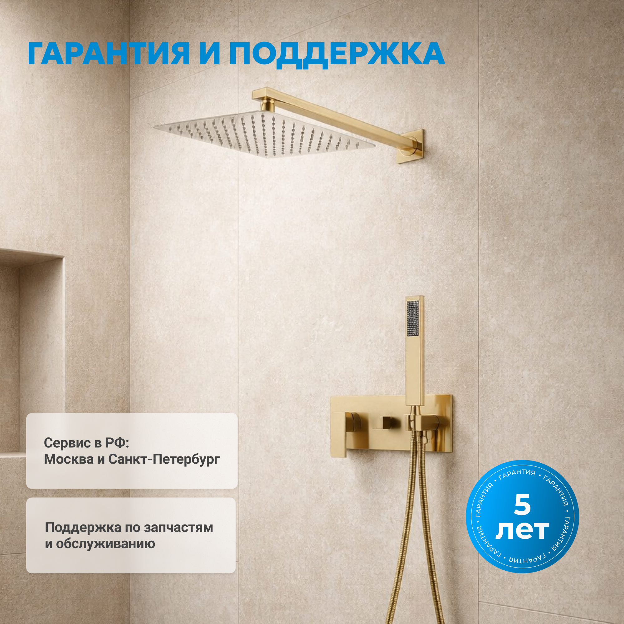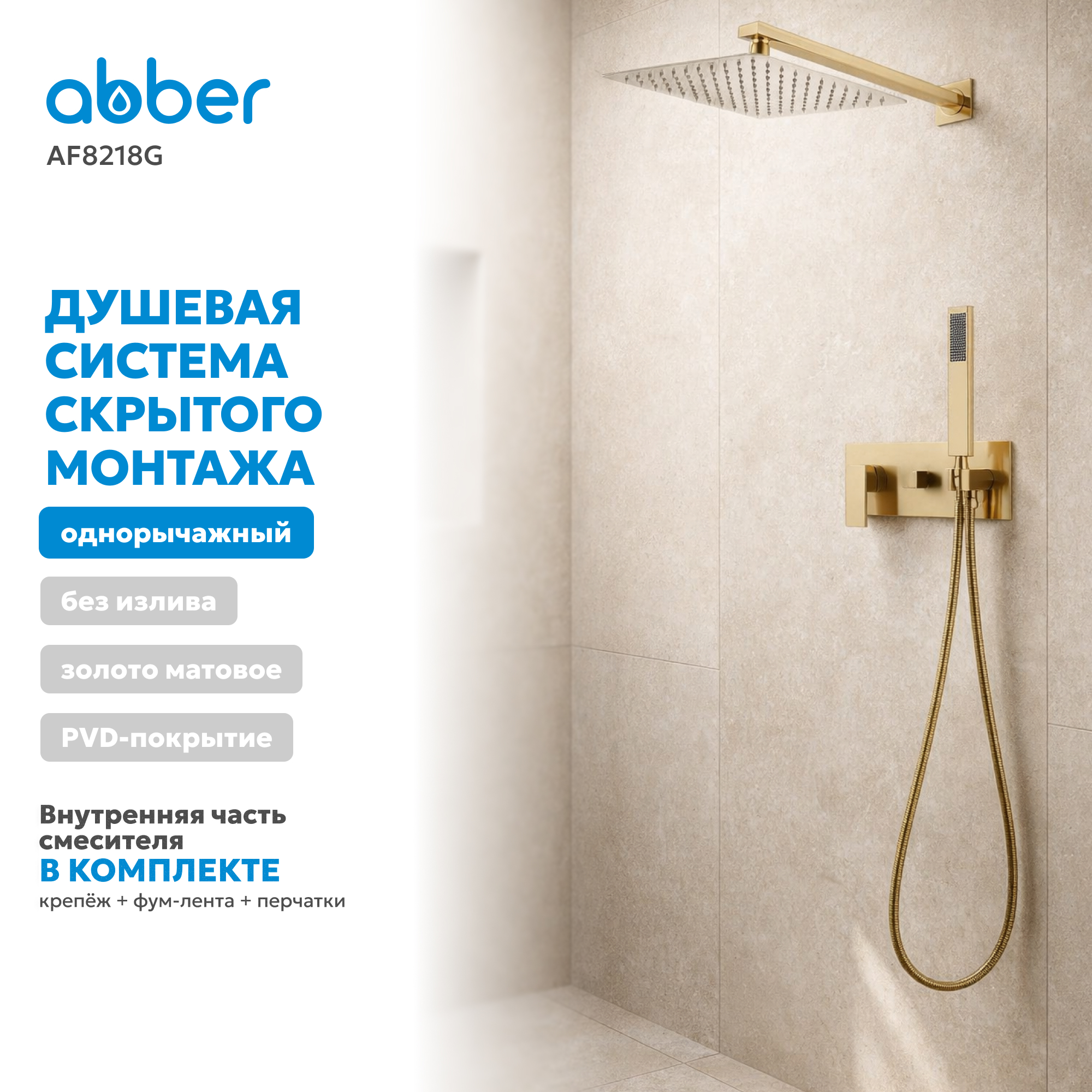 Душевая система ABBER Daheim AF8218G скрытого монтажа без излива, золото матовое