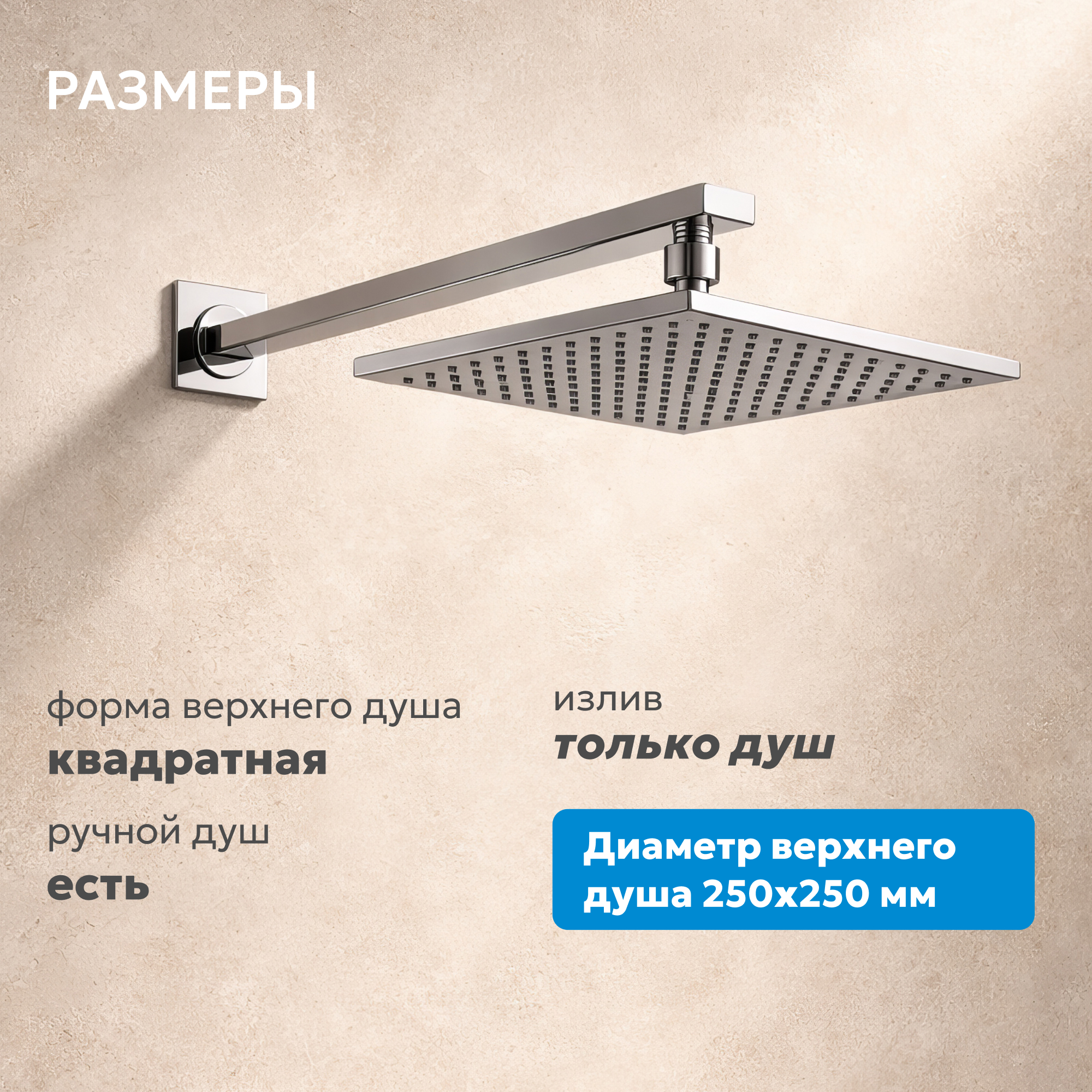 Размер верхнего душа, мм