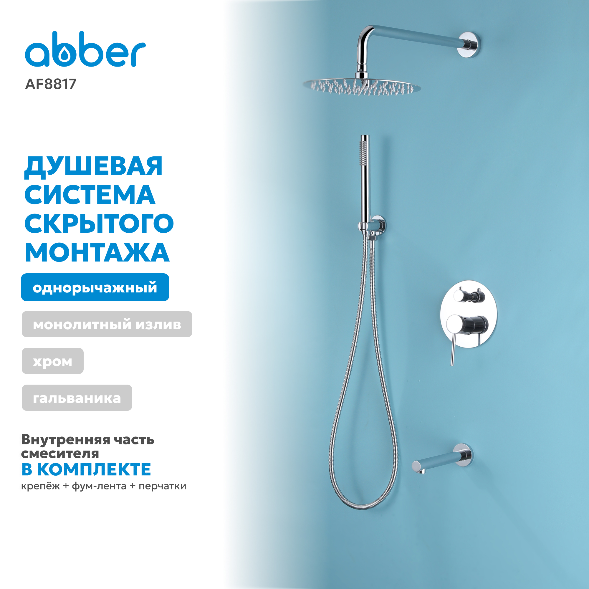 Душевая система ABBER Emotion AF8817 скрытого монтажа с изливом, хром