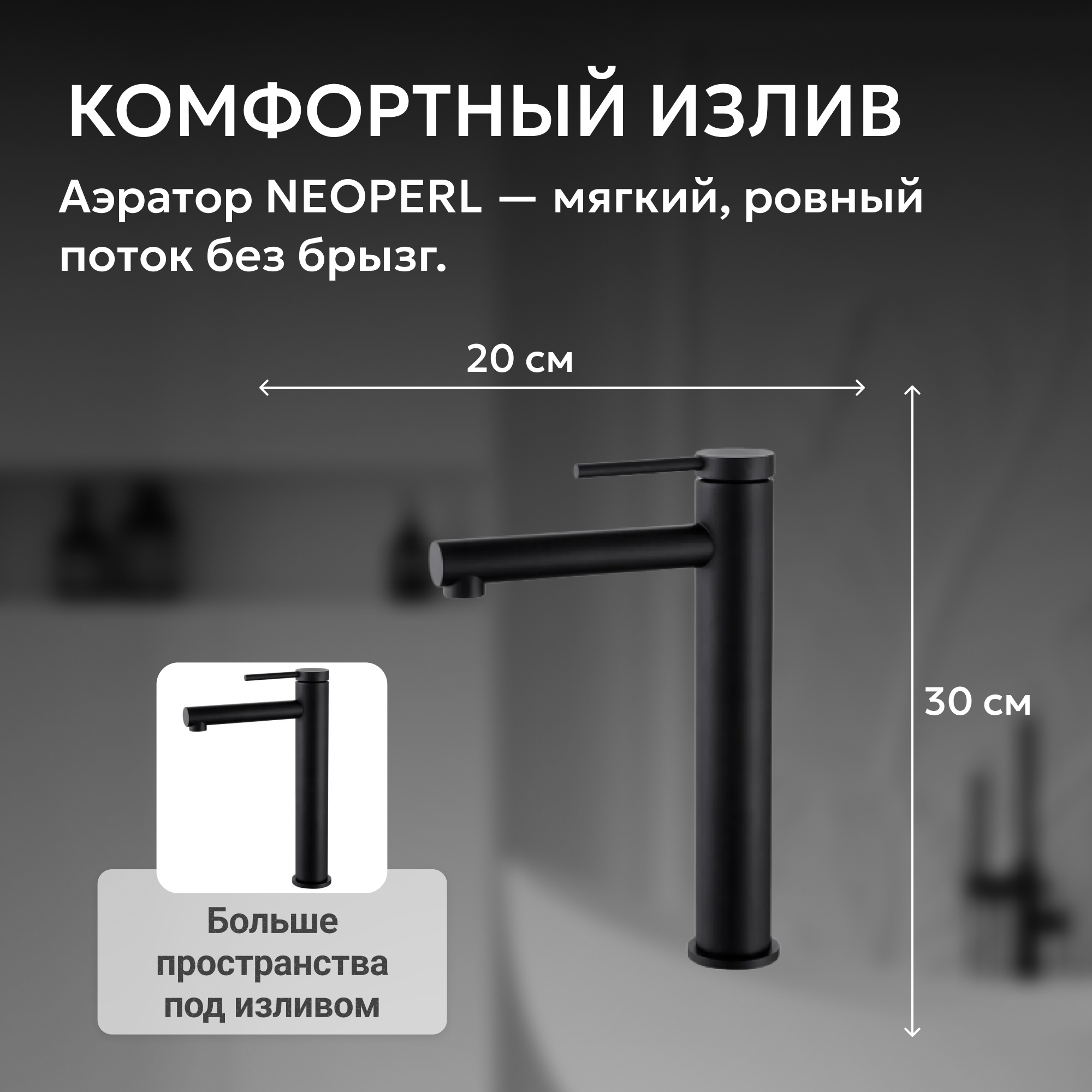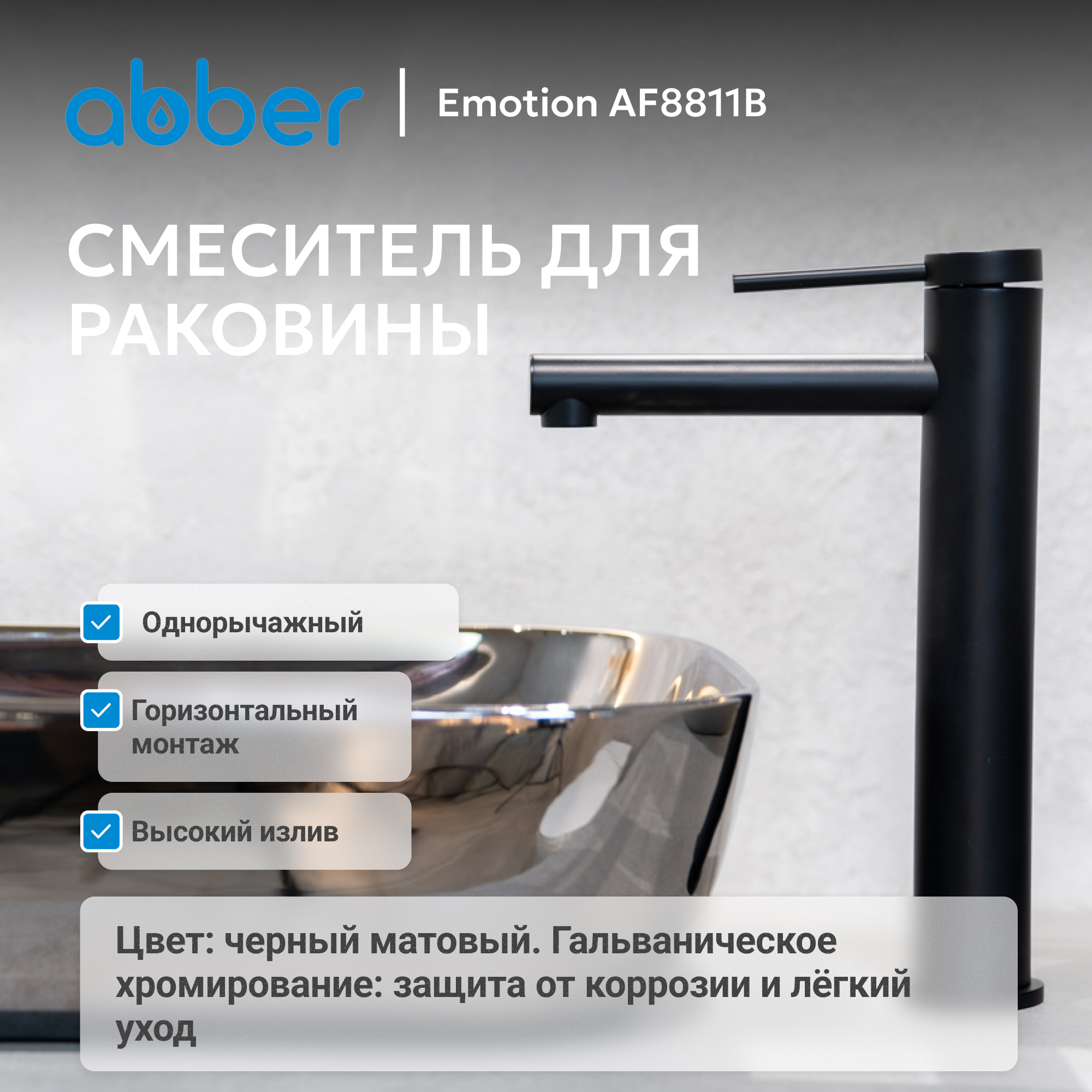 Смеситель ABBER Emotion AF8811B для накладной раковины, черный матовый