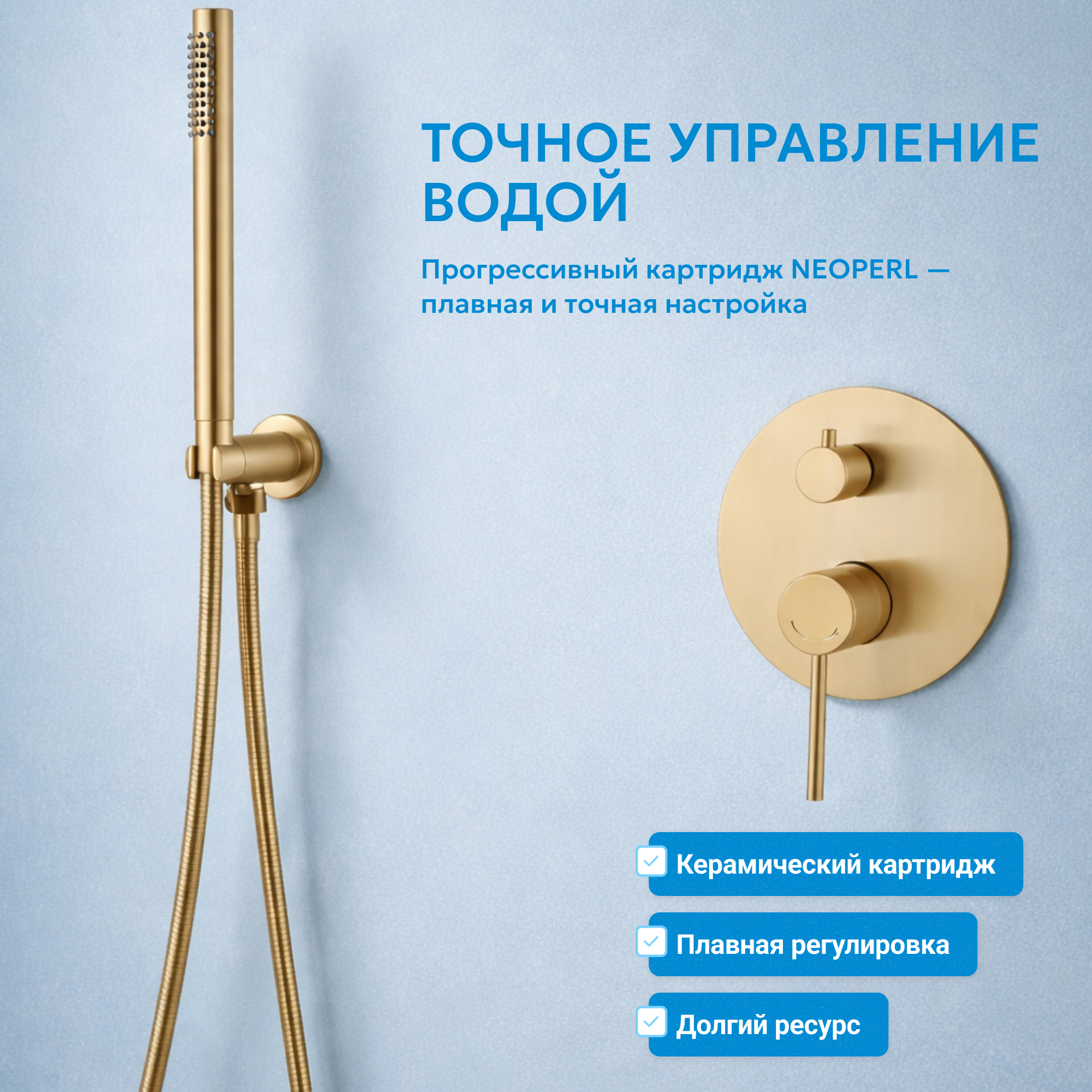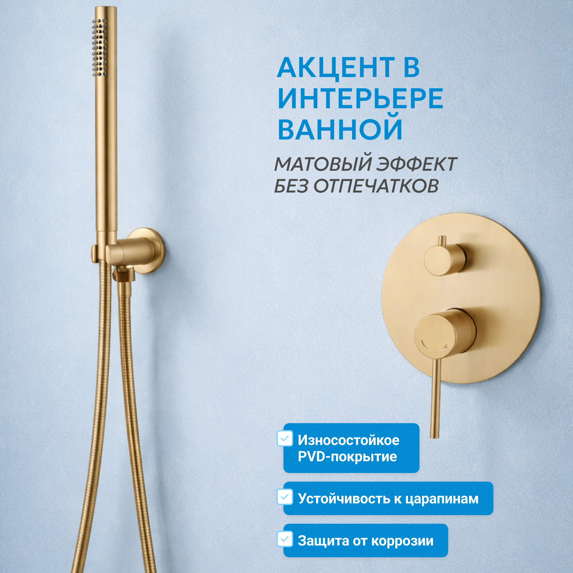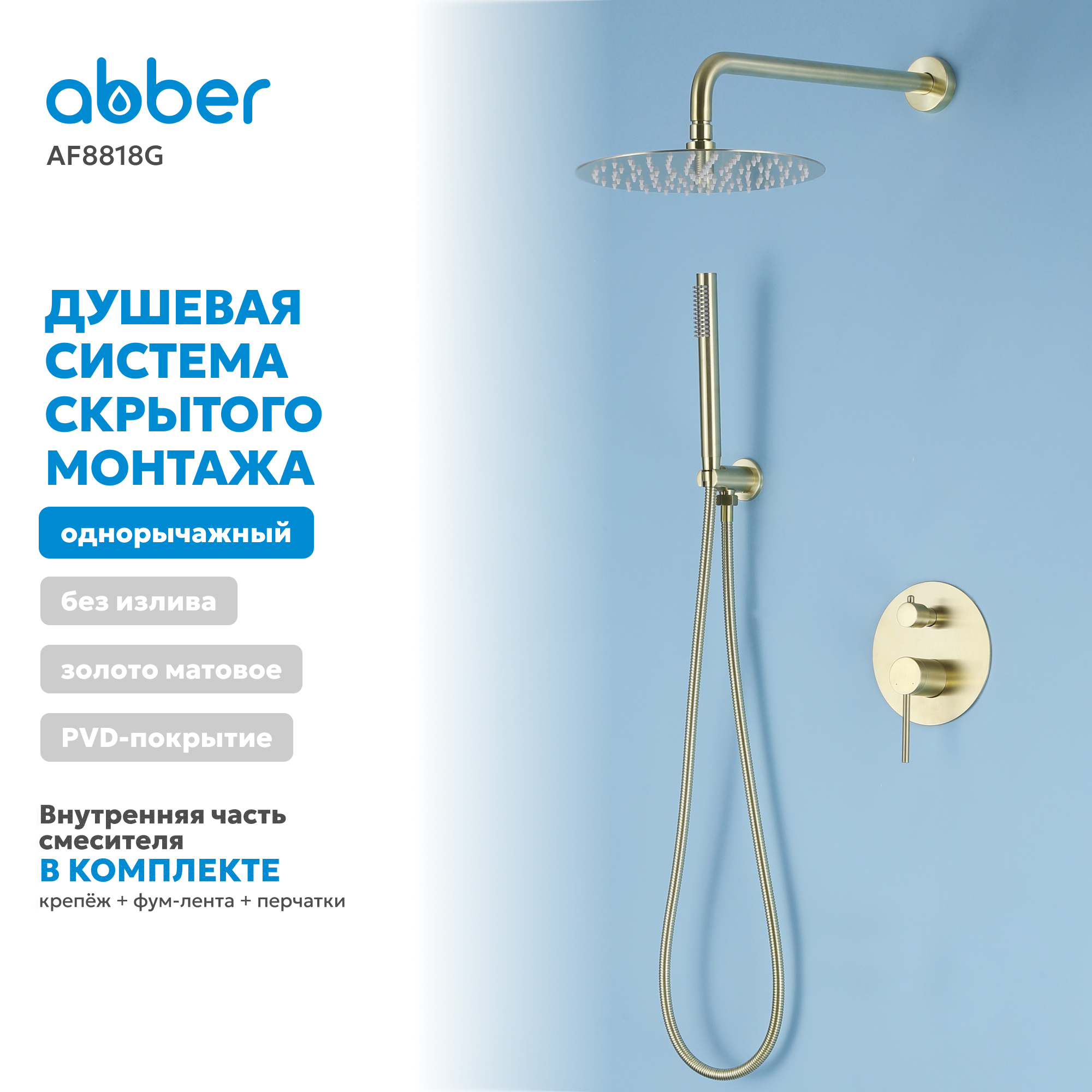 Душевая система ABBER Emotion AF8818G скрытого монтажа без излива, золото матовое