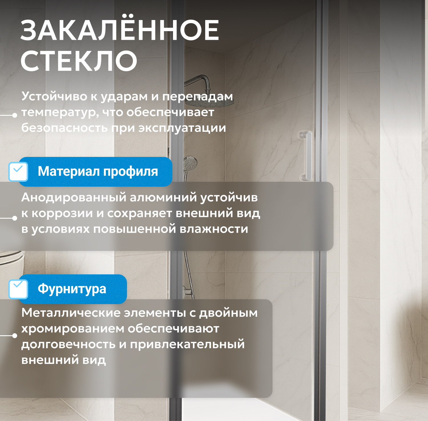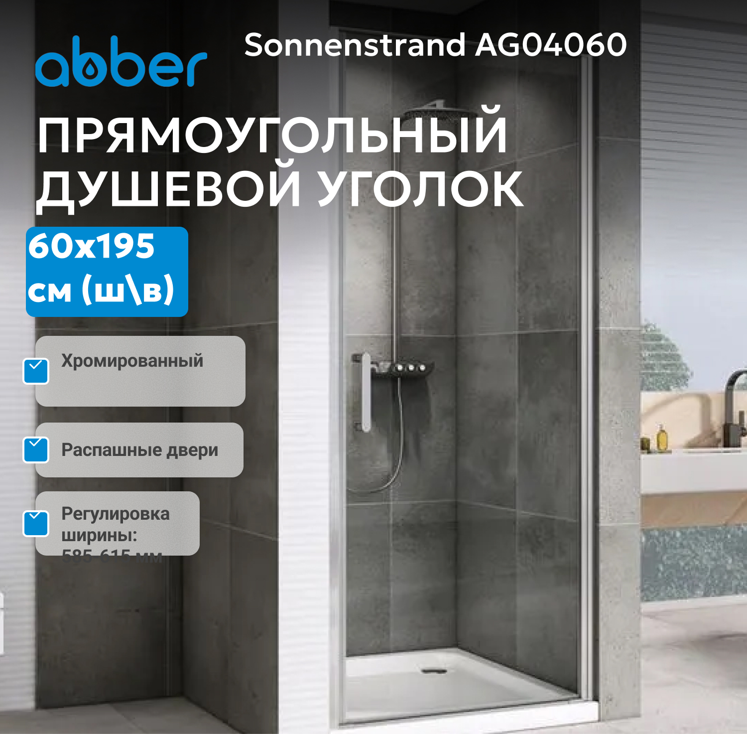 Душевые двери ABBER изготавливаются из анодированного алюминиевого профиля и закалённого, ударопрочного стекла. Также стеклянные душевые двери обладают рядом преимуществ: они легко моются, надежны и долговечны в эксплуатации.