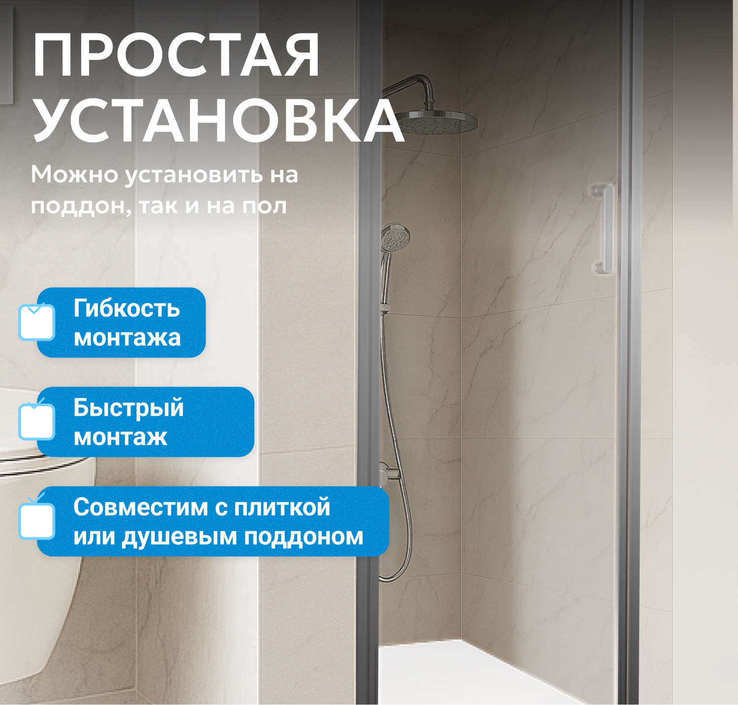 - возможна установка на пол и на поддон, поддон приобретается отдельно