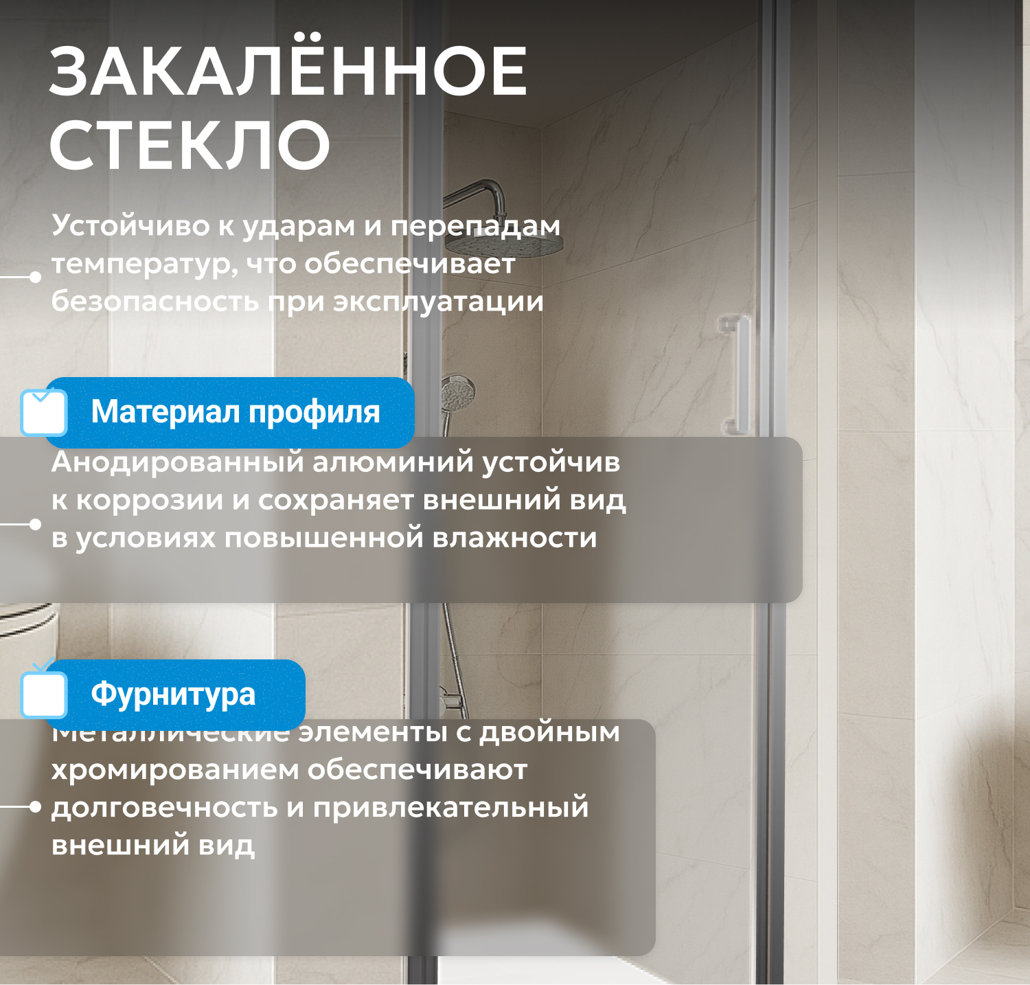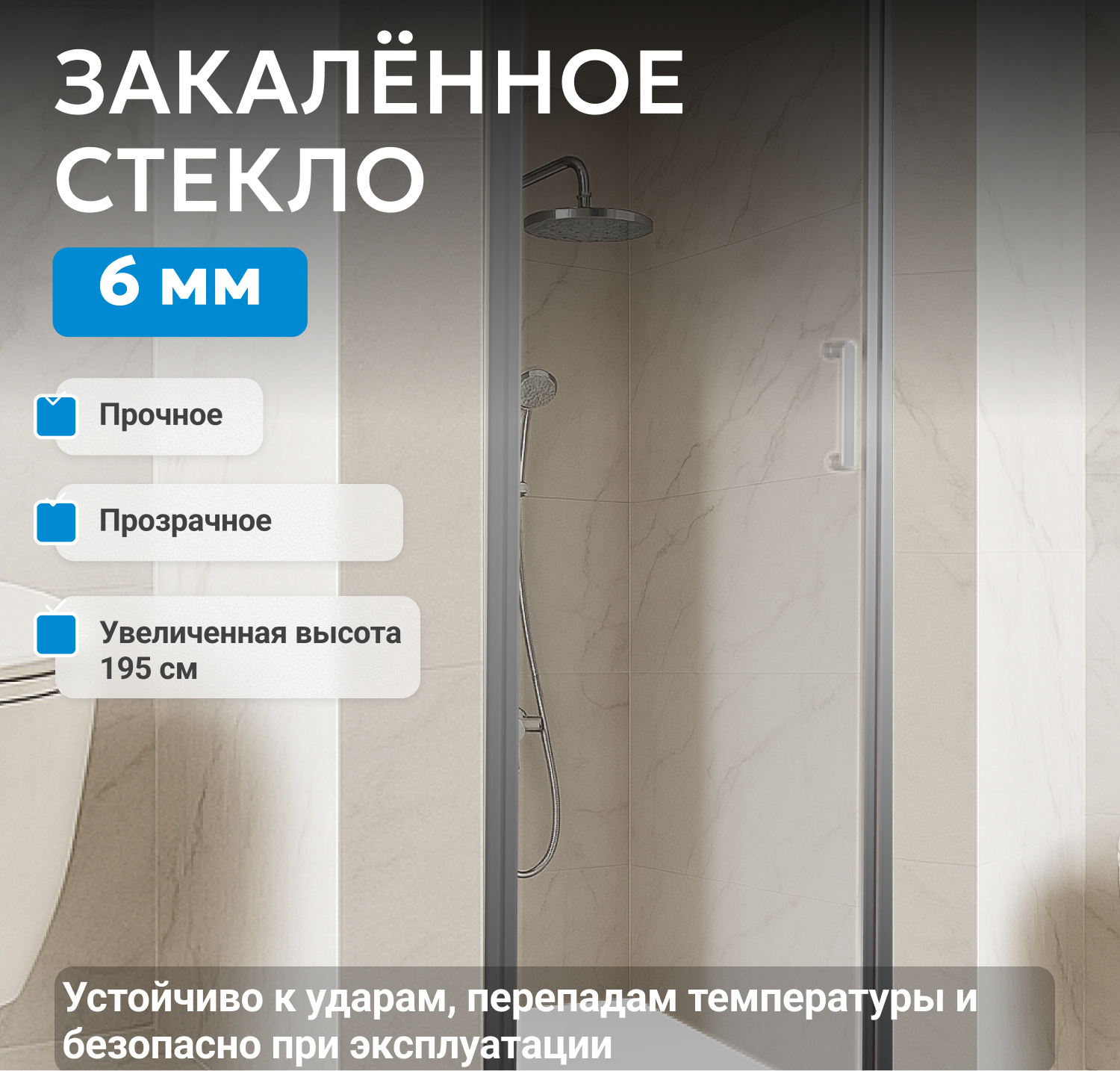 - закаленное, прозрачное стекло 6 мм