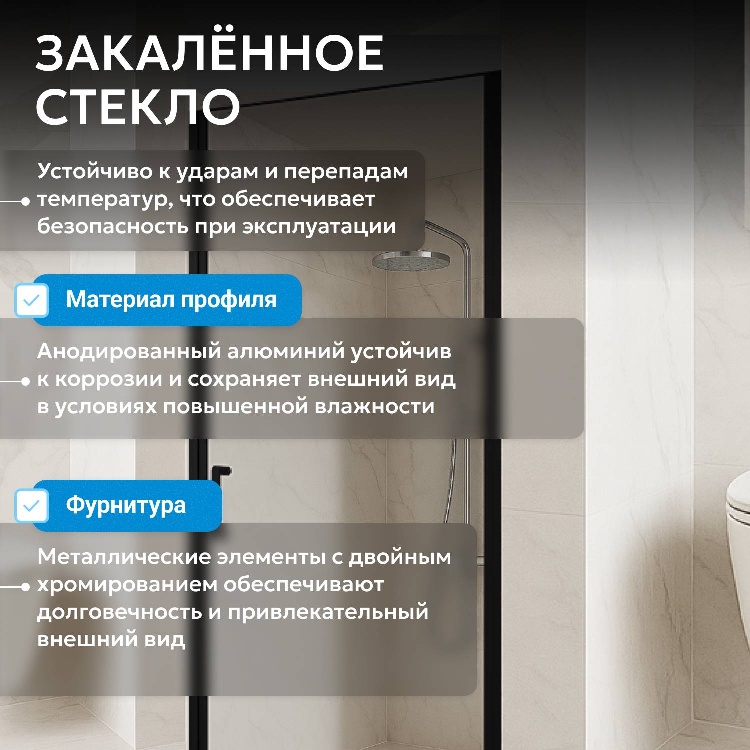 Душевые двери ABBER изготавливаются из алюминиевого профиля, окрашенного порошковой краской и закалённого, ударопрочного стекла. Также стеклянные душевые двери обладают рядом преимуществ: они легко моются, надежны и долговечны в эксплуатации.