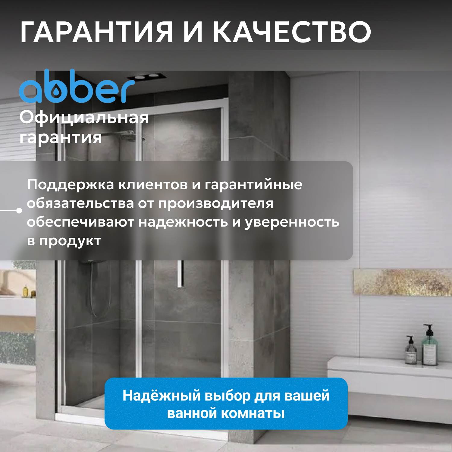 Душевые двери ABBER изготавливаются из анодированного алюминиевого профиля и закалённого, ударопрочного стекла. Также стеклянные душевые двери обладают рядом преимуществ: они легко моются, надежны и долговечны в эксплуатации.
