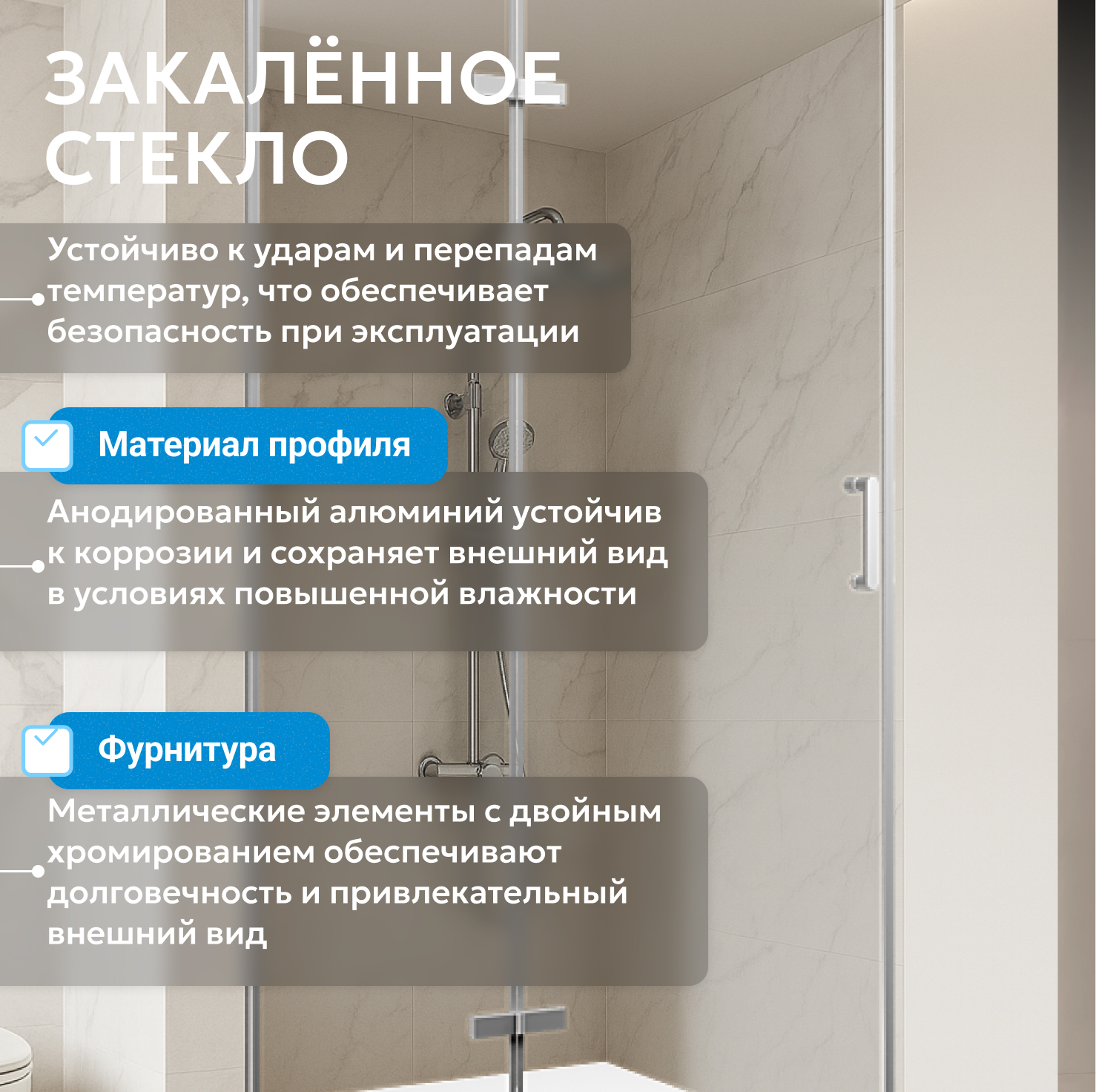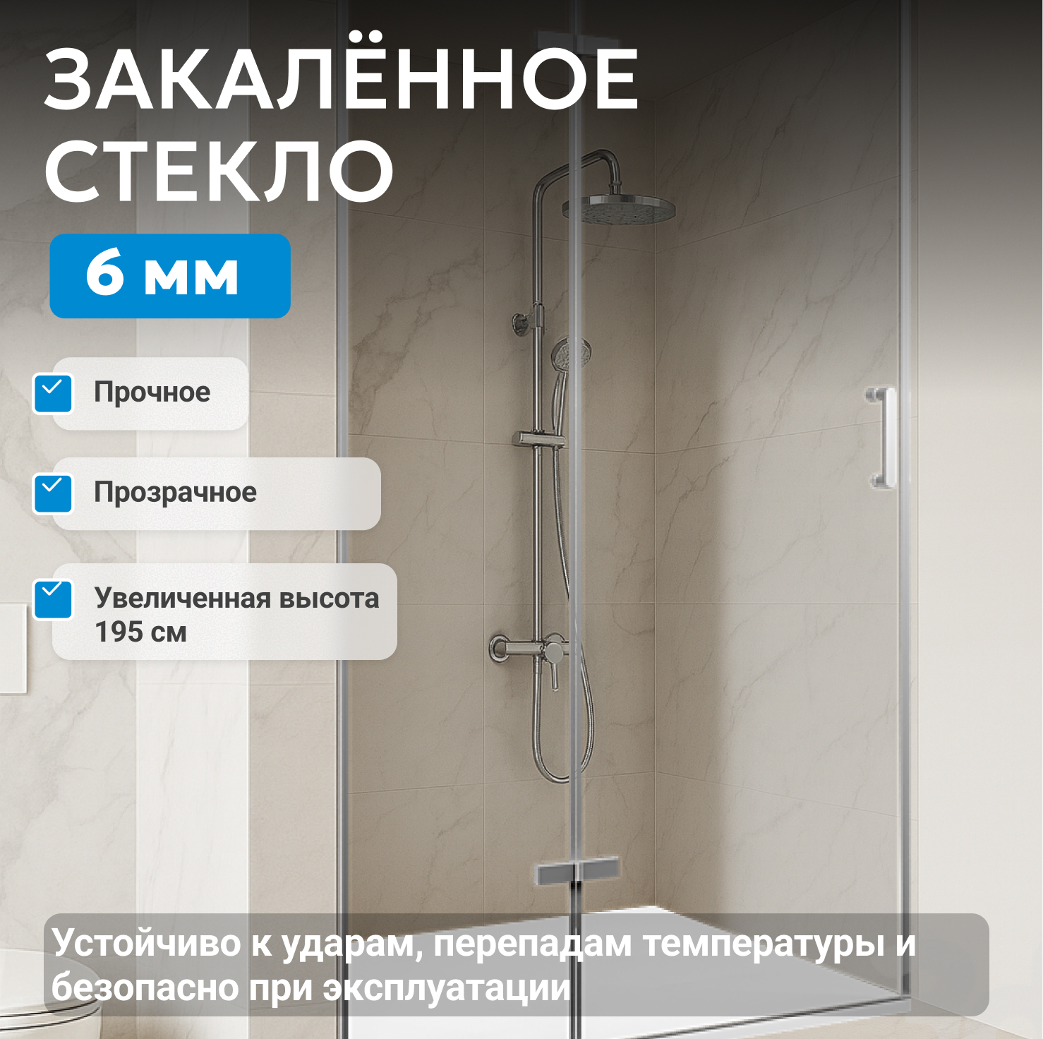 - закаленное, прозрачное стекло 6 мм