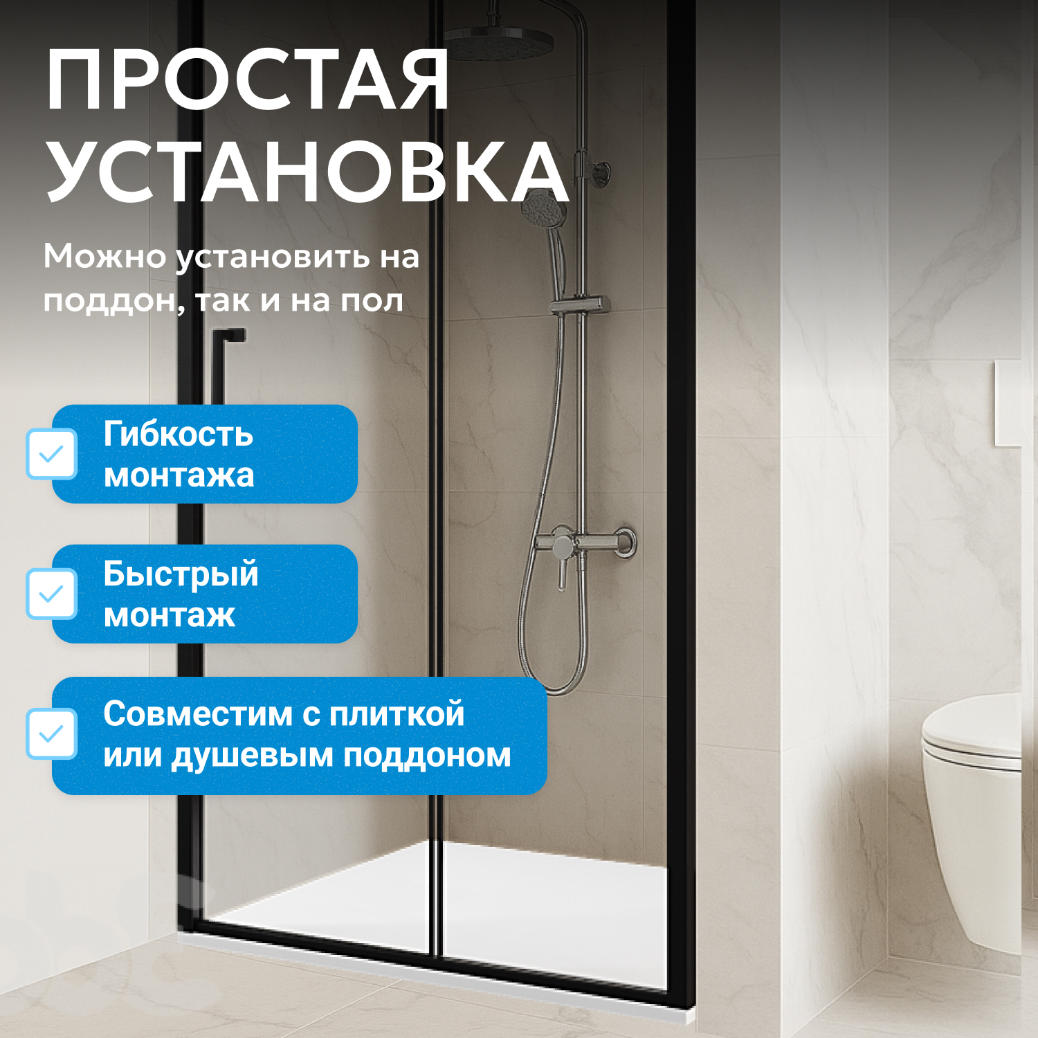 - возможна установка на пол и на поддон, поддон приобретается отдельно