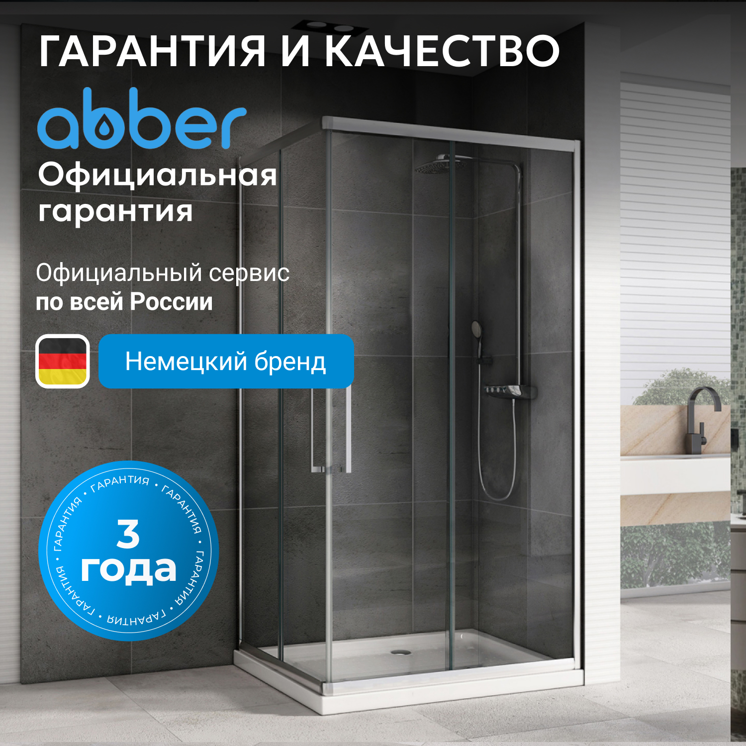 Стёкла визуально увеличивают пространство. Контроль качества и сборки осуществляется брендом ABBER. Официальное сервисное обслуживание по России, сервисные центры расположены в Москве и Санкт-Петербурге.