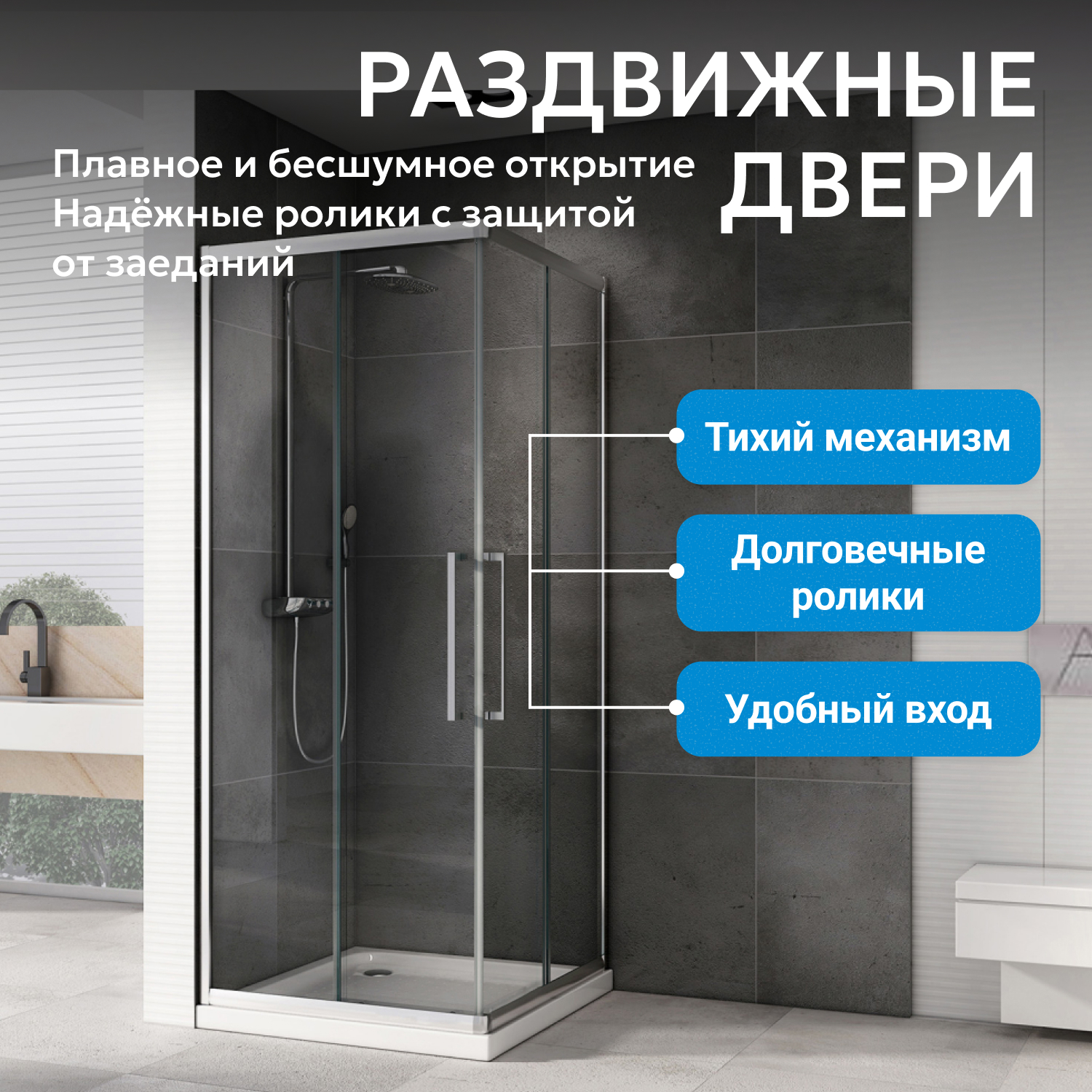 Душевой уголок ABBER Schwarzer Diamant AG02100H (100x100 см) предназначен для установки в угол, выполнен из закалённого прозрачного стекла 6 мм. Высота 195 см подходит для стандартных ванных комнат. Раздвижные двери движутся на двойных роликах, что обеспечивает плавность хода и ширину входа 577 мм. Металлические ручки повышают удобство эксплуатации. Хромированный профиль сочетается с современной сантехникой.