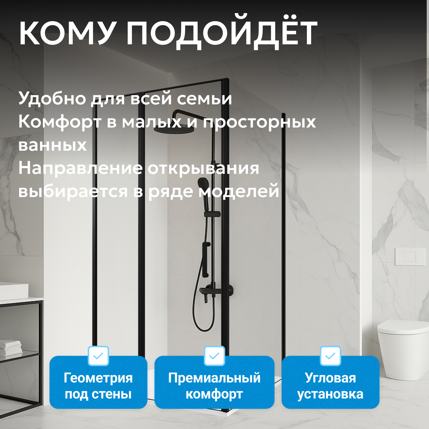 Используется прозрачное закаленное стекло толщиной 6 мм, обеспечивается надежность и безопасность. Универсальное маятниковое крепление позволяет открывать дверь внутрь и наружу, что удобно для небольших ванных комнат. Одна распашная дверь и металлическая ручка обеспечивают удобство использования.
