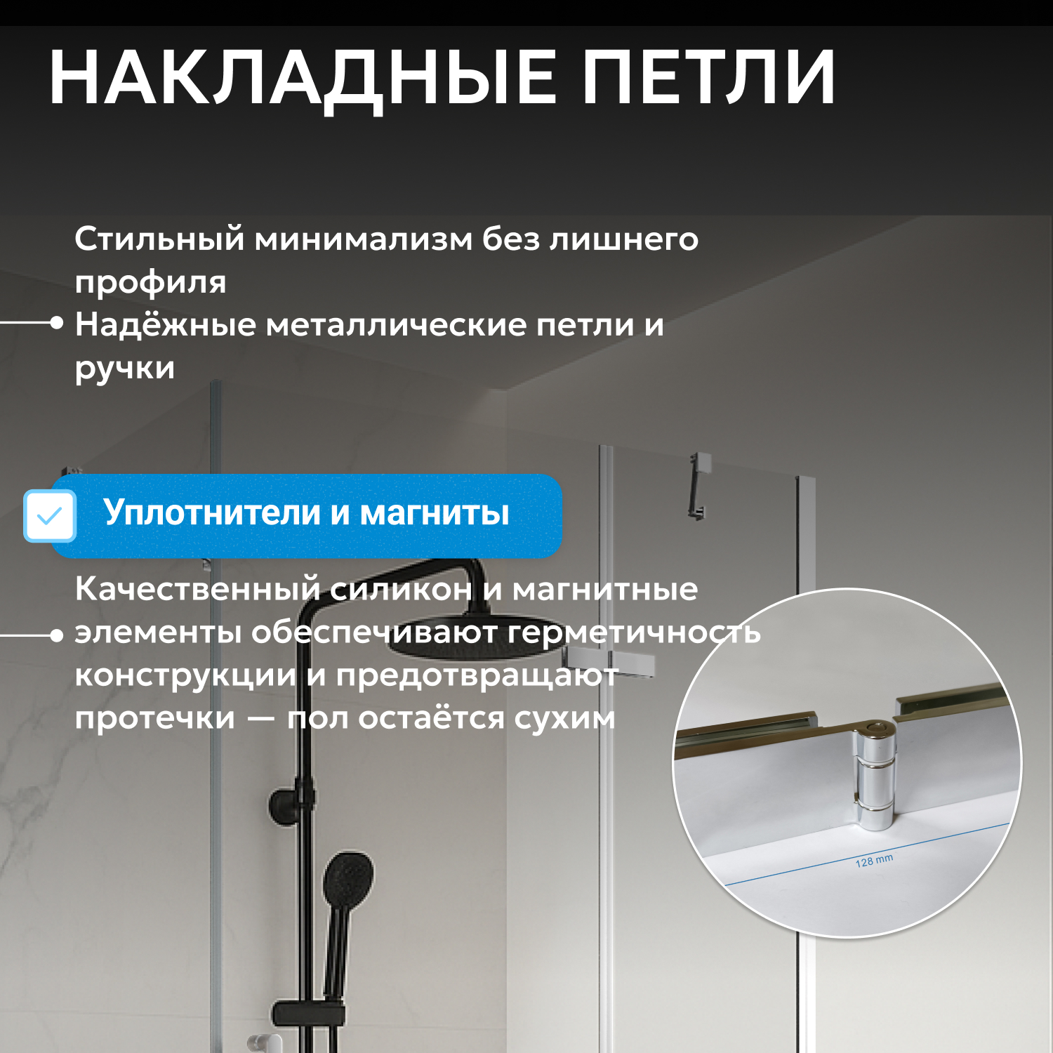 ABBER Zart AG08120-S101 выбирают за современный дизайн, безопасное закалённое стекло, лаконичный профиль, универсальность монтажа, надёжные комплектующие и российскую сервисную поддержку. Модель сочетает долговечность, качество и удобство эксплуатации.