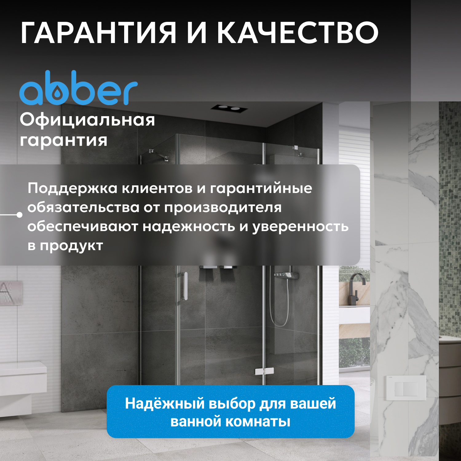 ABBER — российский бренд с акцентом на немецкое качество и современный дизайн. Гарантия на душевой уголок составляет 3 года, что подтверждает доверие производителя к изделию. Сервисная поддержка осуществляется по всей России, сервисные центры расположены в Москве и Санкт-Петербурге.