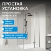Распашная дверь с широким входом (570 мм) обеспечивает удобство и свободный доступ. Монтаж производится в угол помещения, что экономит место. Возможна установка с поддоном, который подбирается отдельно по желанию покупателя.