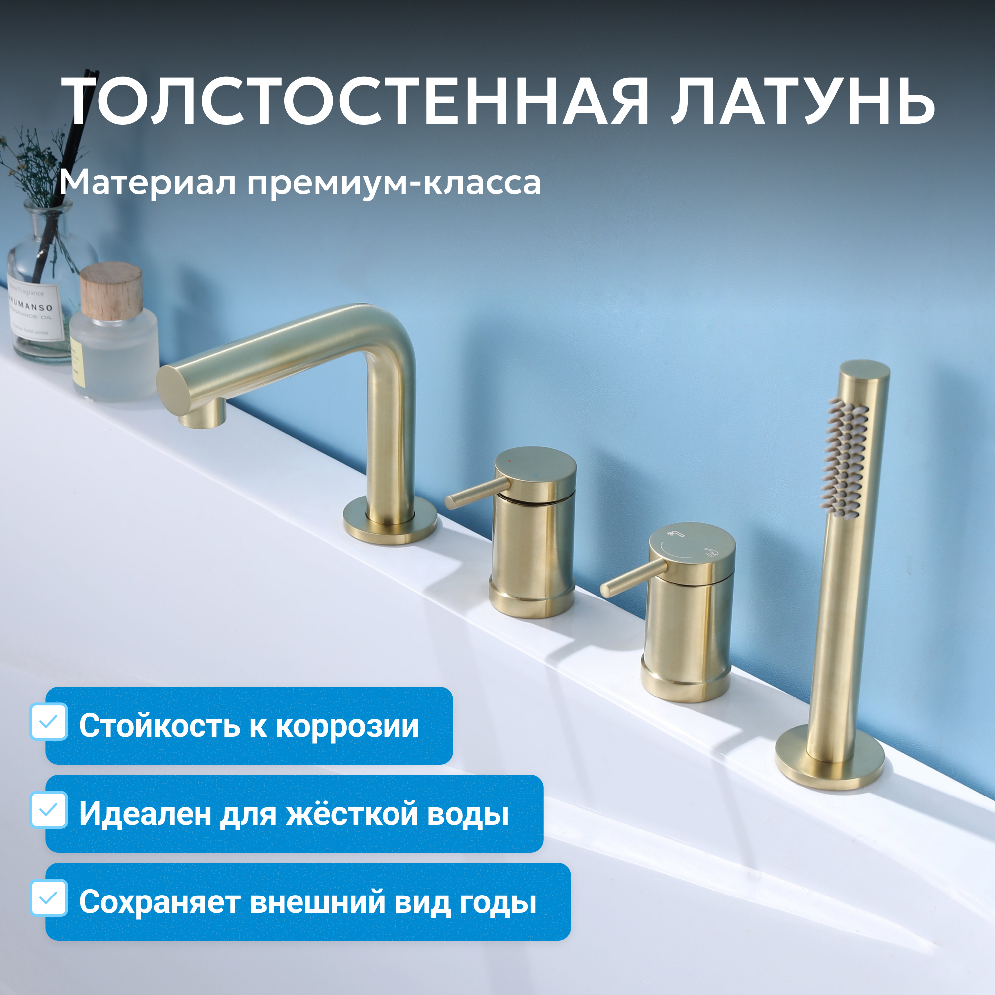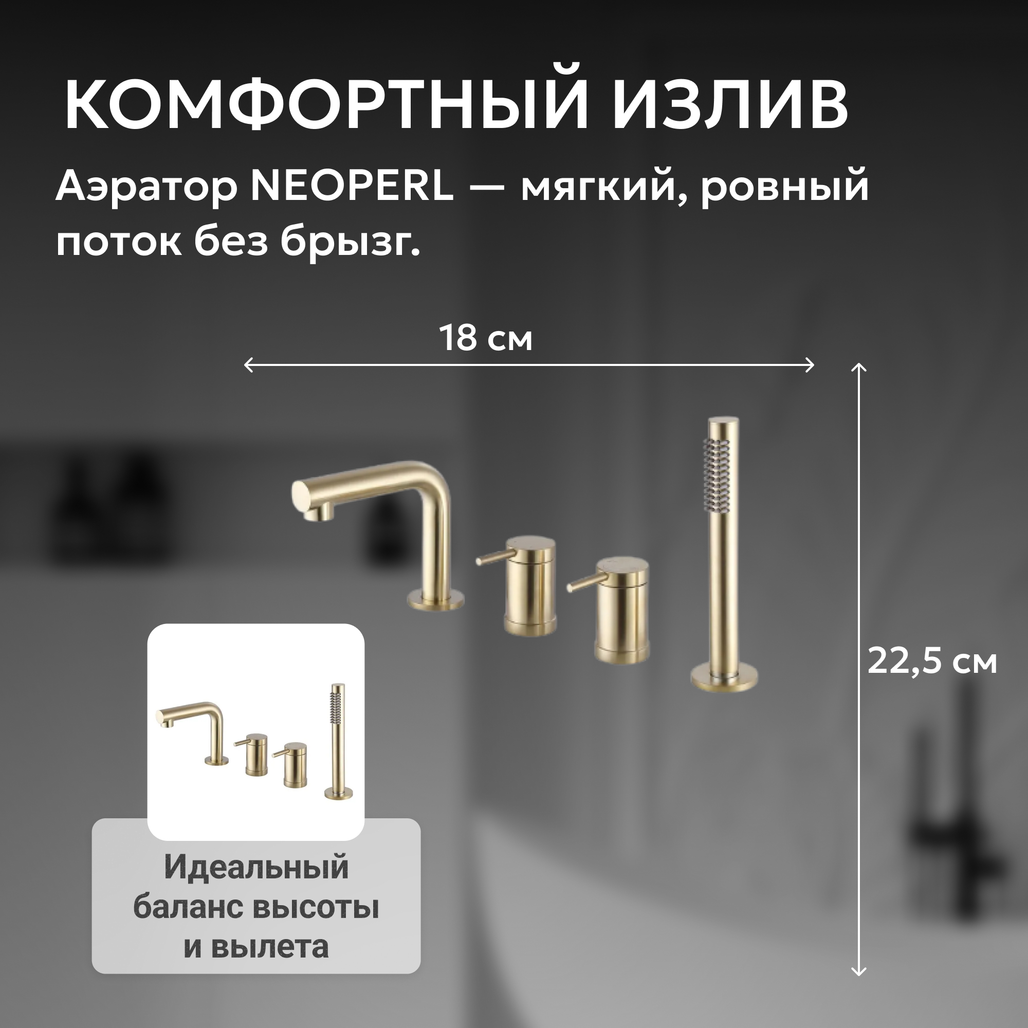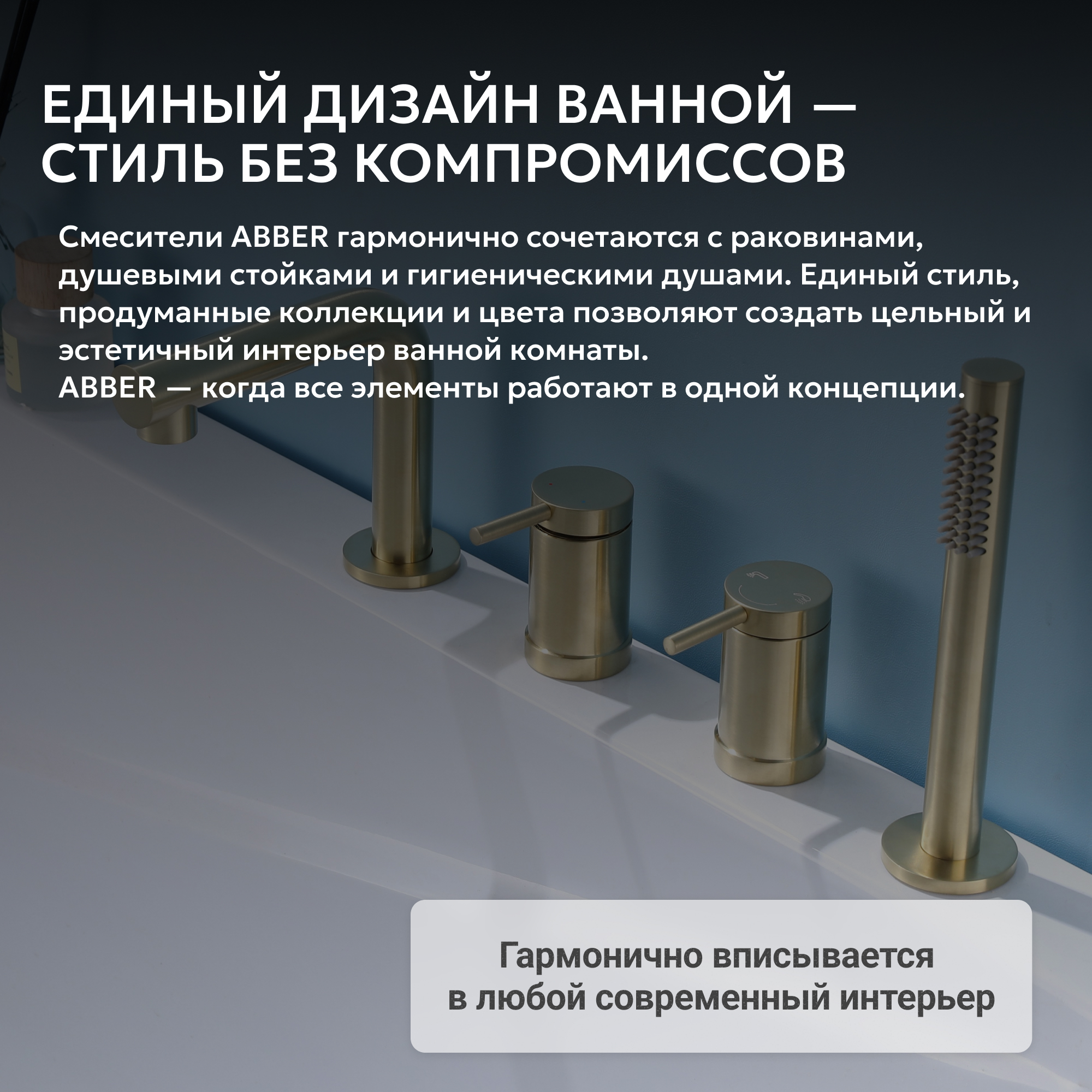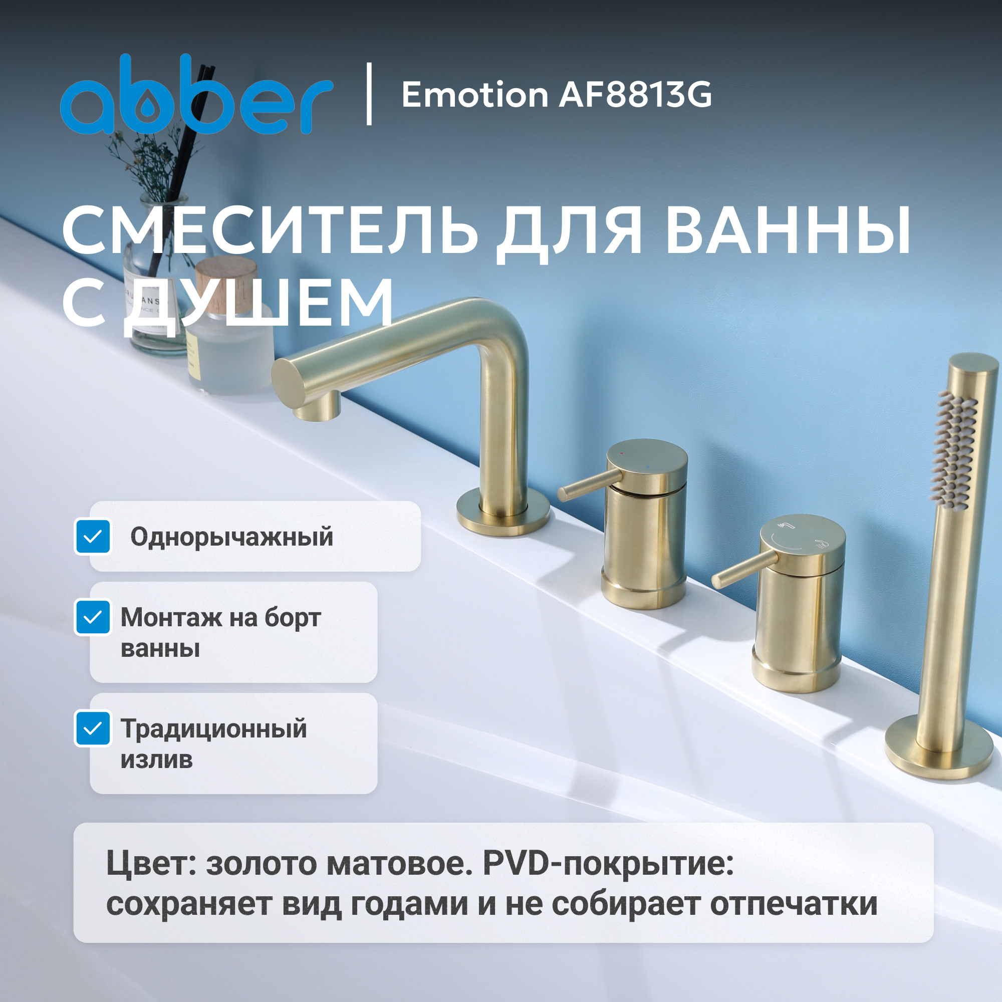 Смеситель ABBER Emotion AF8813G на борт ванны, золото матовое