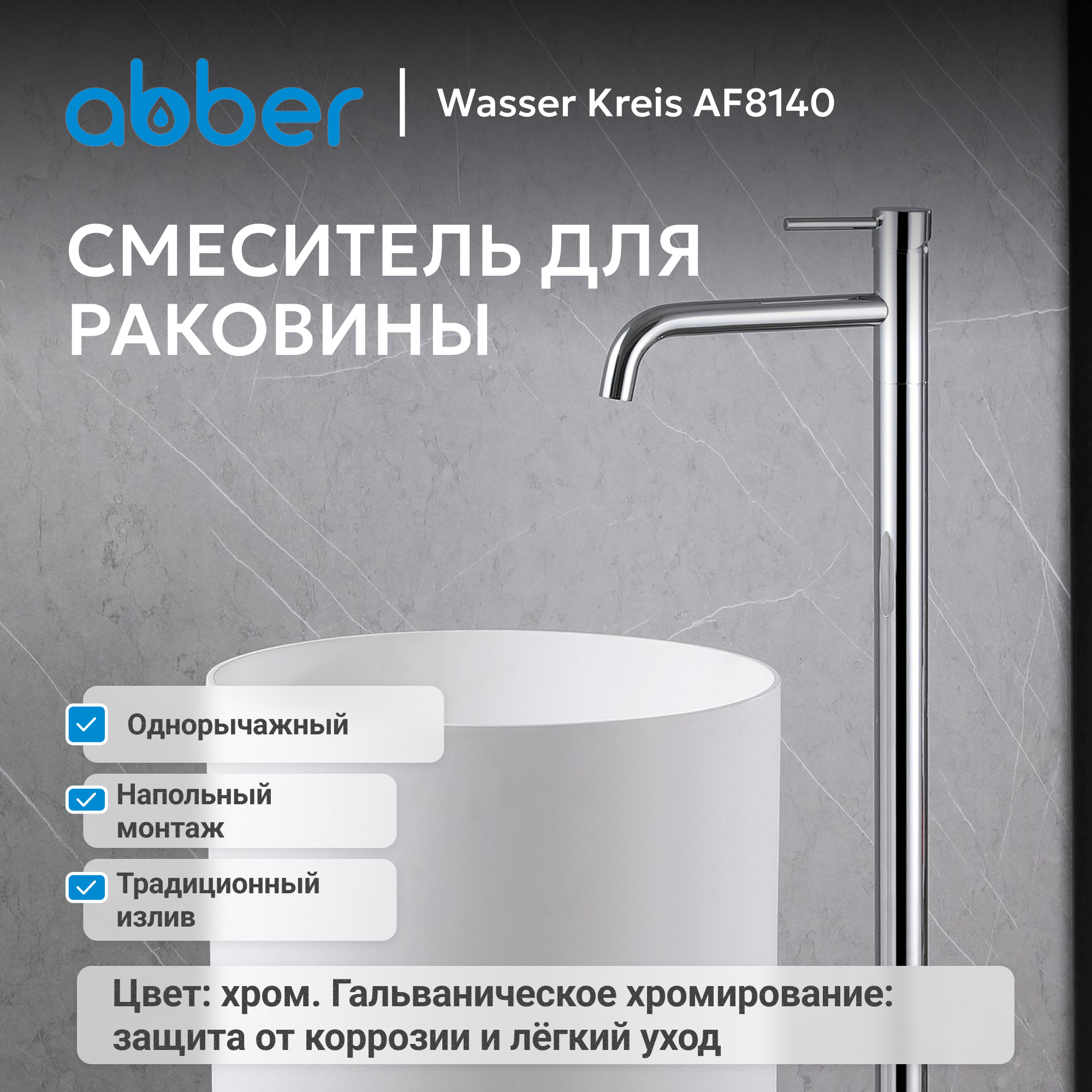 Смеситель ABBER Wasser Kreis AF8140 напольный для раковины, хром