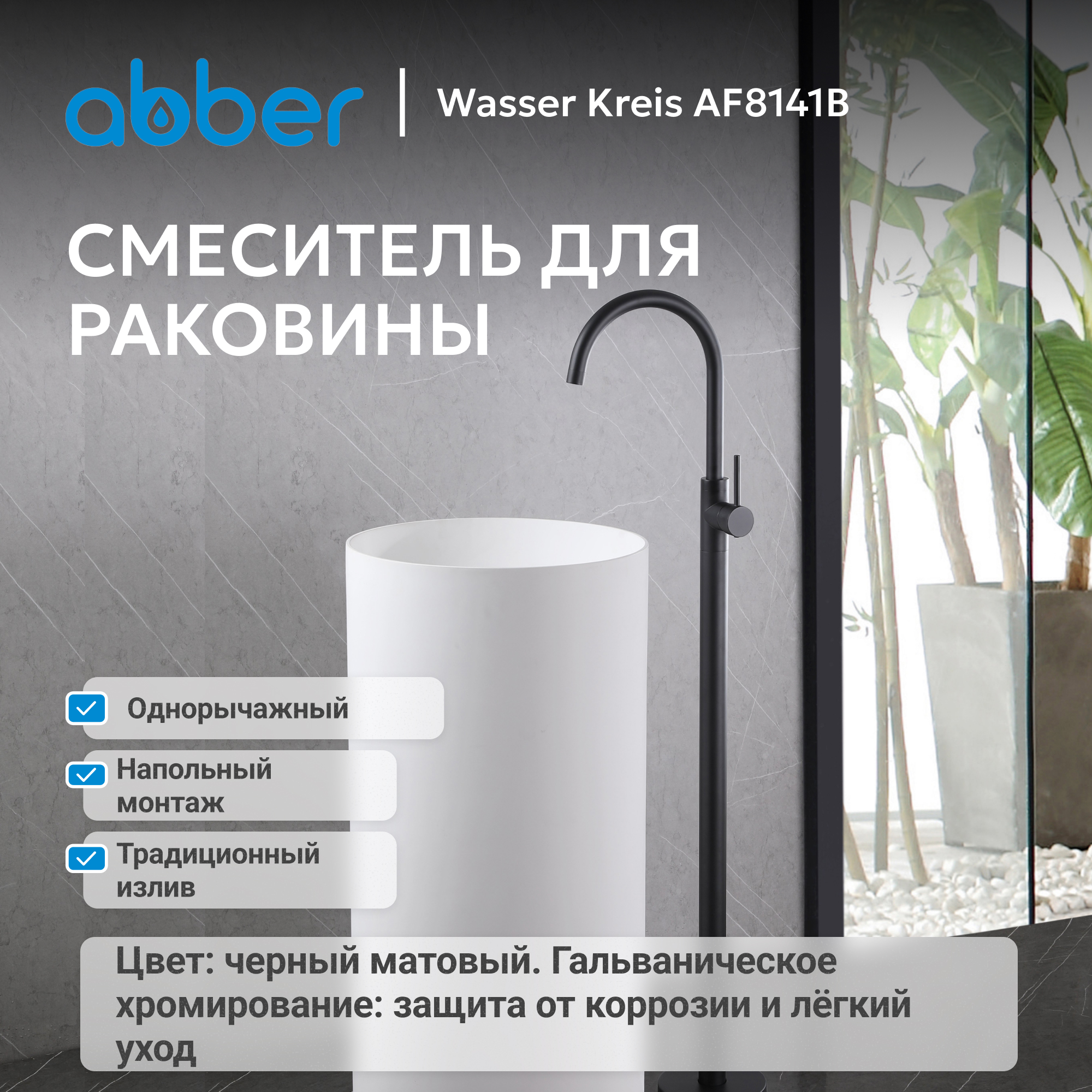 Смеситель ABBER Wasser Kreis AF8141B напольный для раковины, черный матовый